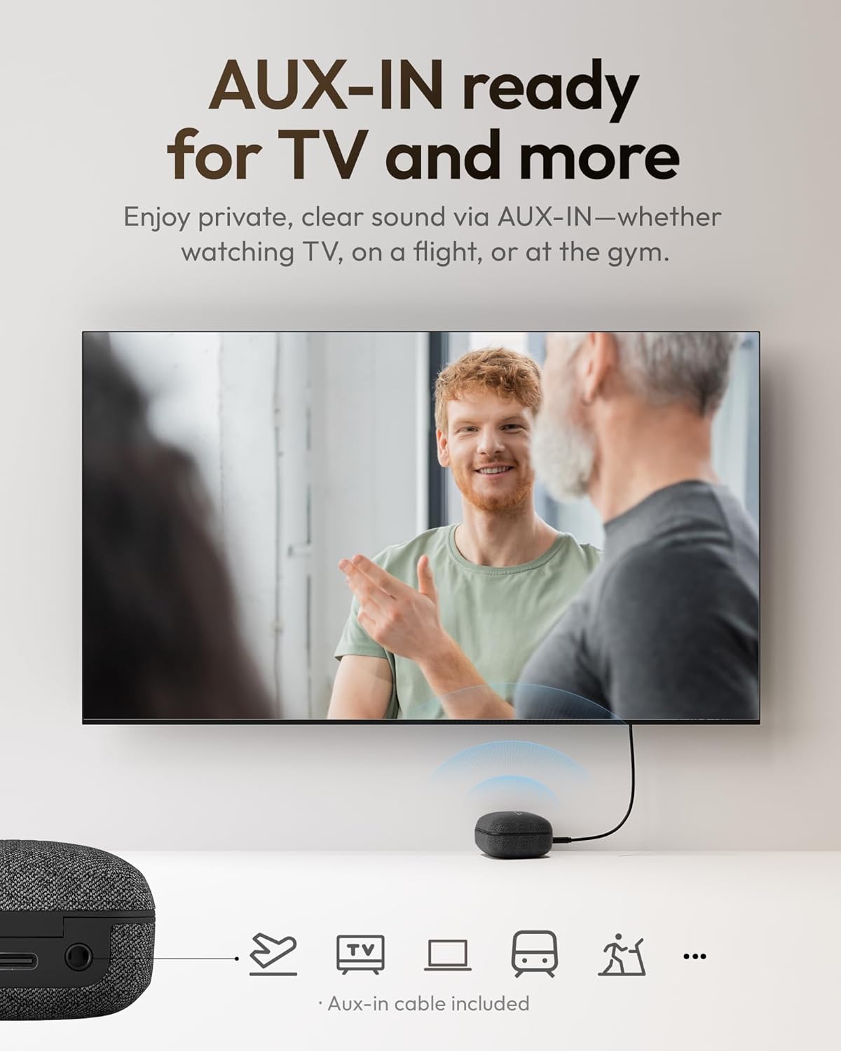 Direct TV & Audio Connection: Use the included AUX-IN cable for a direct connection to TV, laptop, in-flight entertainment system, and other audio sources for private clear sound