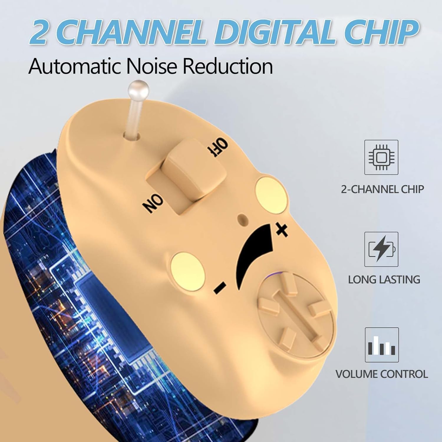 【High-Quality Sound】: Our 2-channel digital hearing aids are designed to effectively handle background noise, ensuring a clear listening experience. Whether it’s a busy street or a noisy restaurant, you can use this otc hearing aids to enjoy a conversation without being distracted by background sounds