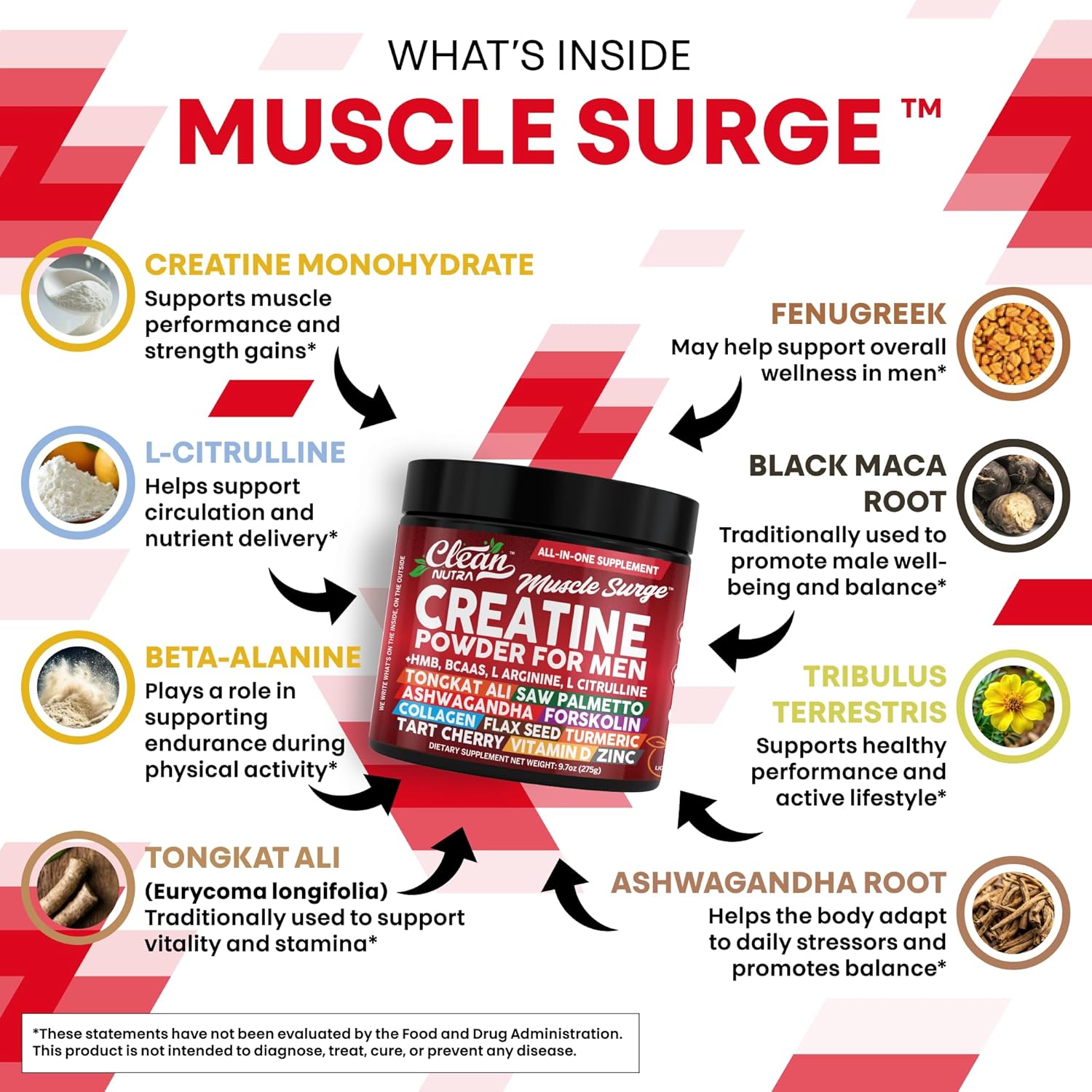 Mens Creatine Advanced muscle supplemet for men – Clean Nutraceuticals packs research-backed creatine monohydrate, pure creatine, strength-supporting hmb, fast-absorbing leucine and a full spectrum of essential amino acids into one great-tasting powder. This precision blend saturates ATP stores, reduces protein breakdown and supports rapid muscle growth, recovery and performance, helping you push past plateaus and build lean mass without juggling multiple separate products.