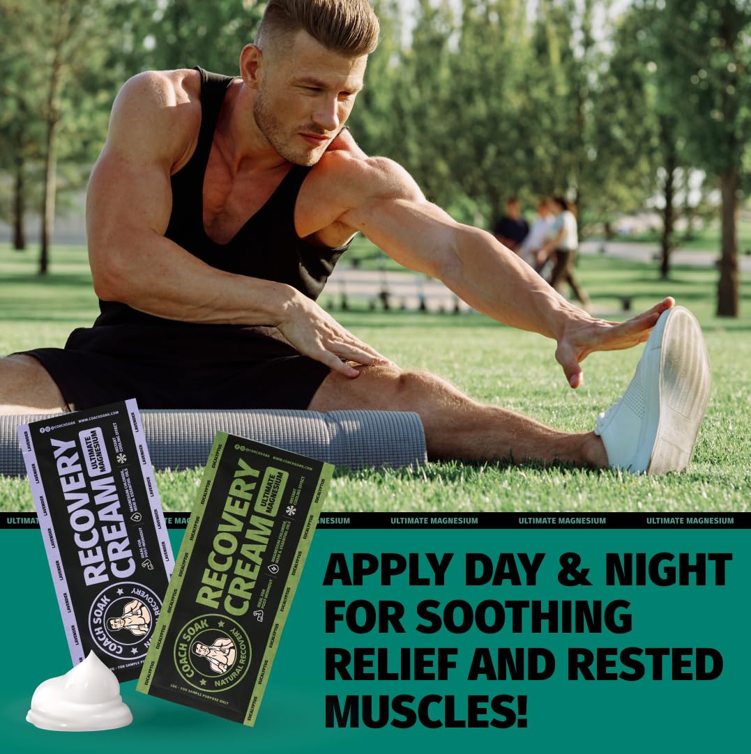 Athlete Recovery Support: Coach Soak Magnesium Lotion Trial Pack delivers magnesium chloride’s soothing properties, ideal for supporting athletic recovery. Enriched with MSM, eucalyptus, and lavender, it offers a comforting post-workout routine