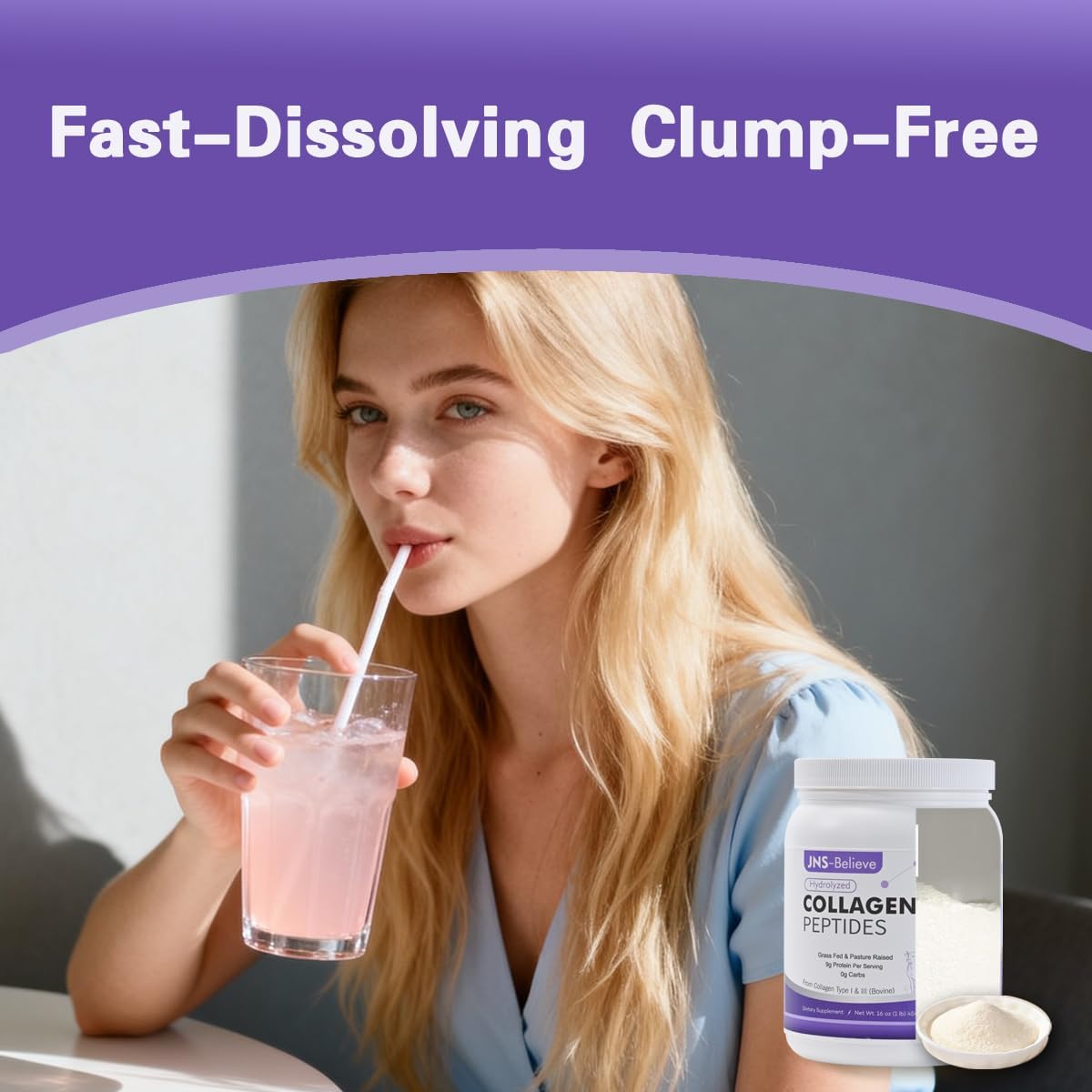 JNS-Believe collagen peptides are sourced from 100% grass-fed, pasture-raised cattle, delivering powerful protein in its special form. Free from additives, hormones, this unflavored collagen peptides powder fits seamlessly into your daily routine.