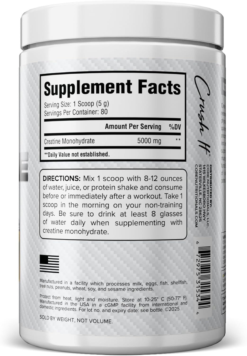 THE CRUSH IT LIFESTYLE: Core Nutritionals is committed to transparency and quality, with all products manufactured in the U.S. in cGMP facilities and backed by rigorous testing. Our mission is built on the CRUSH IT mentality— pursuing excellence, integrity, and helping others achieve their best both in and out of the gym.