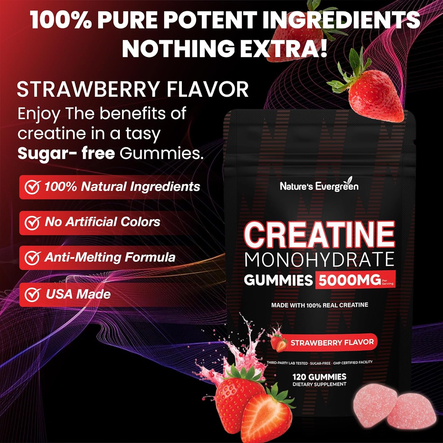 CONVENIENT & GREAT TASTE – Power up anytime, anywhere with our delicious sugar-free creatine gummies! No water, no mess, no mixing! just grab, chew, and go. Bursting with natural strawberry flavor, these tasty gummies make getting your daily creatine easy, fun, and irresistibly enjoyable!