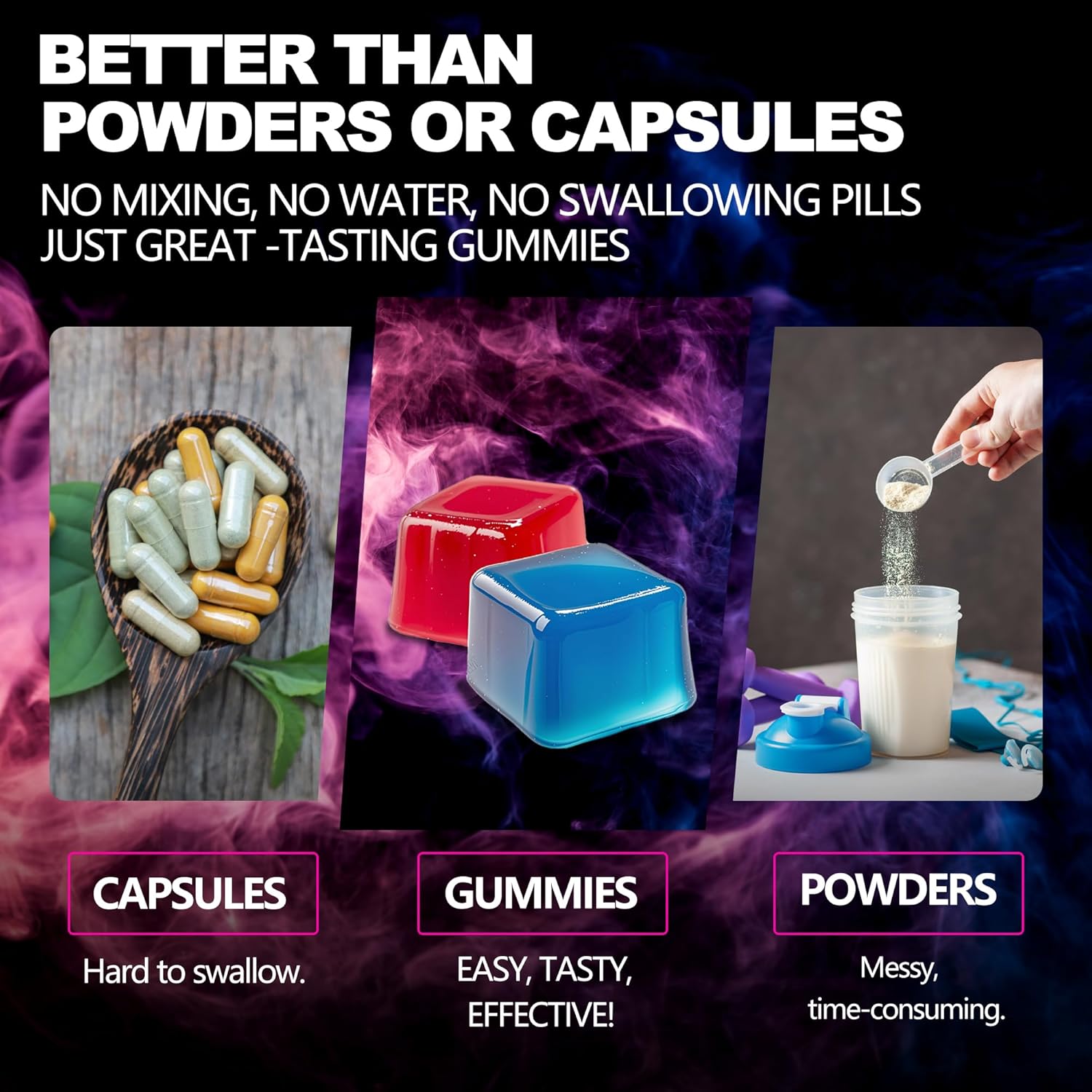 Tasty gains:Blueberry & Cherry Flavor,Creatine gummy tasty gains; creatine gummies no sugar; classic flavors paired with novel tastes, perfect fitness men and fitness women.