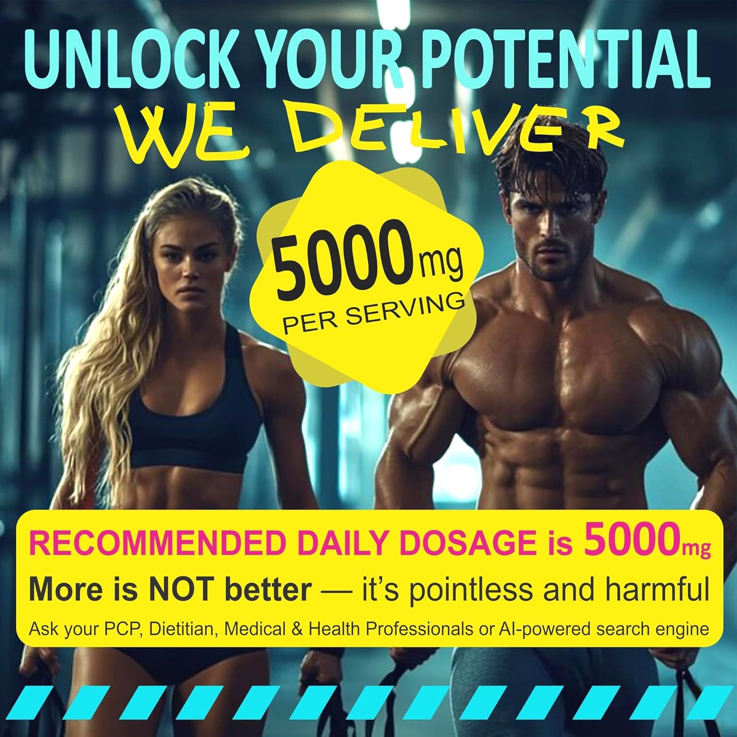 Advanced Creatine Formula: Unlock the power of creatine with our high-potency creatine monohydrate gummies, delivering 5000 mg per serving. Enhanced with L-Taurine and Vitamin B12, these pre workout gummies boost energy and muscle strength. Ideal for both men and women, including creatine for women, to maximize performance and recover