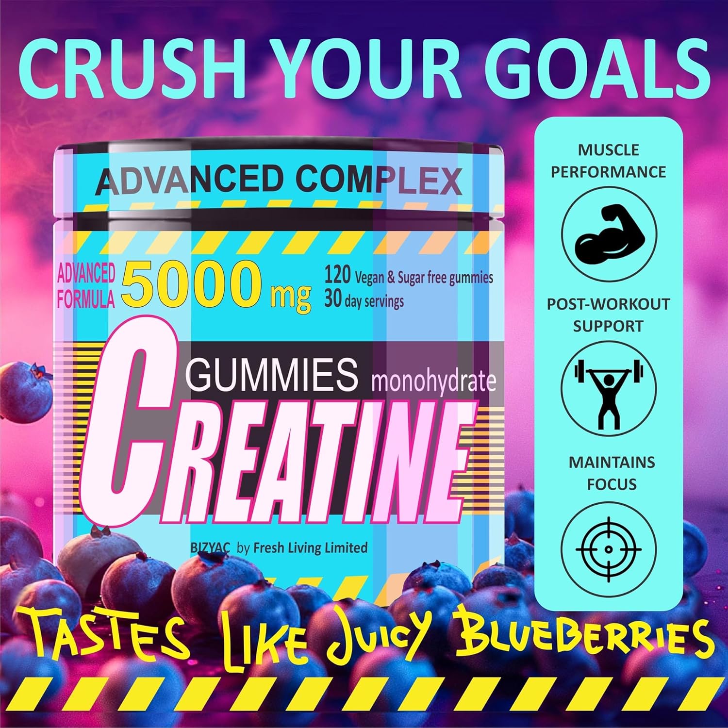Enhanced Muscle Performance & Energy: Boost muscle strength and recovery with our creatine gummies for men. Packed with creatine for men, L-Taurine, and Vitamin B12, these creatine monohydrate gummies support energy, stamina, and performance.