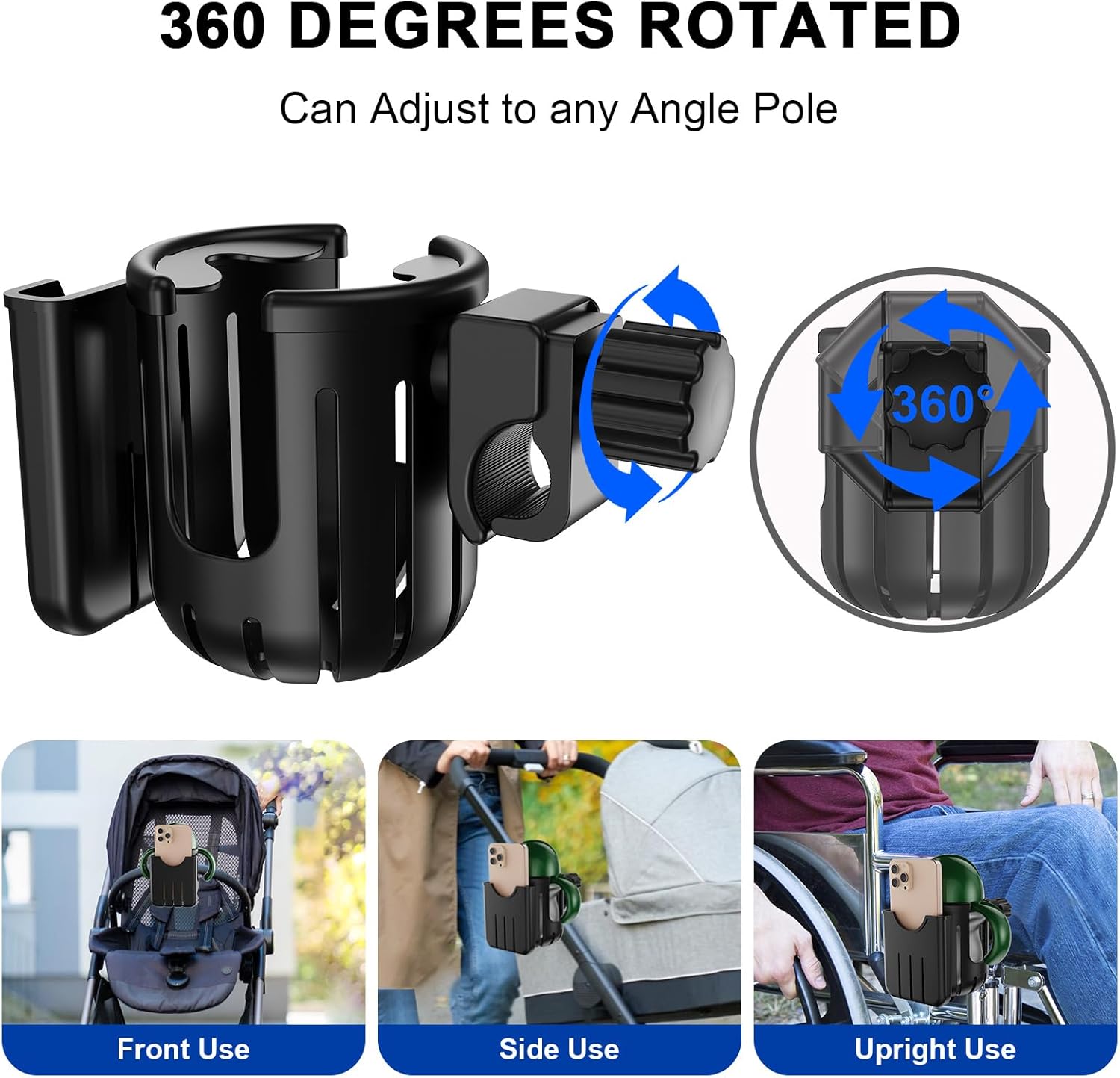 Wide Compatibility: This universal cup holder with phone holder compatible with most baby strollers, walker, wheelchair, rollator, bike, scooter, boat handle bar, shopping cart and so on.