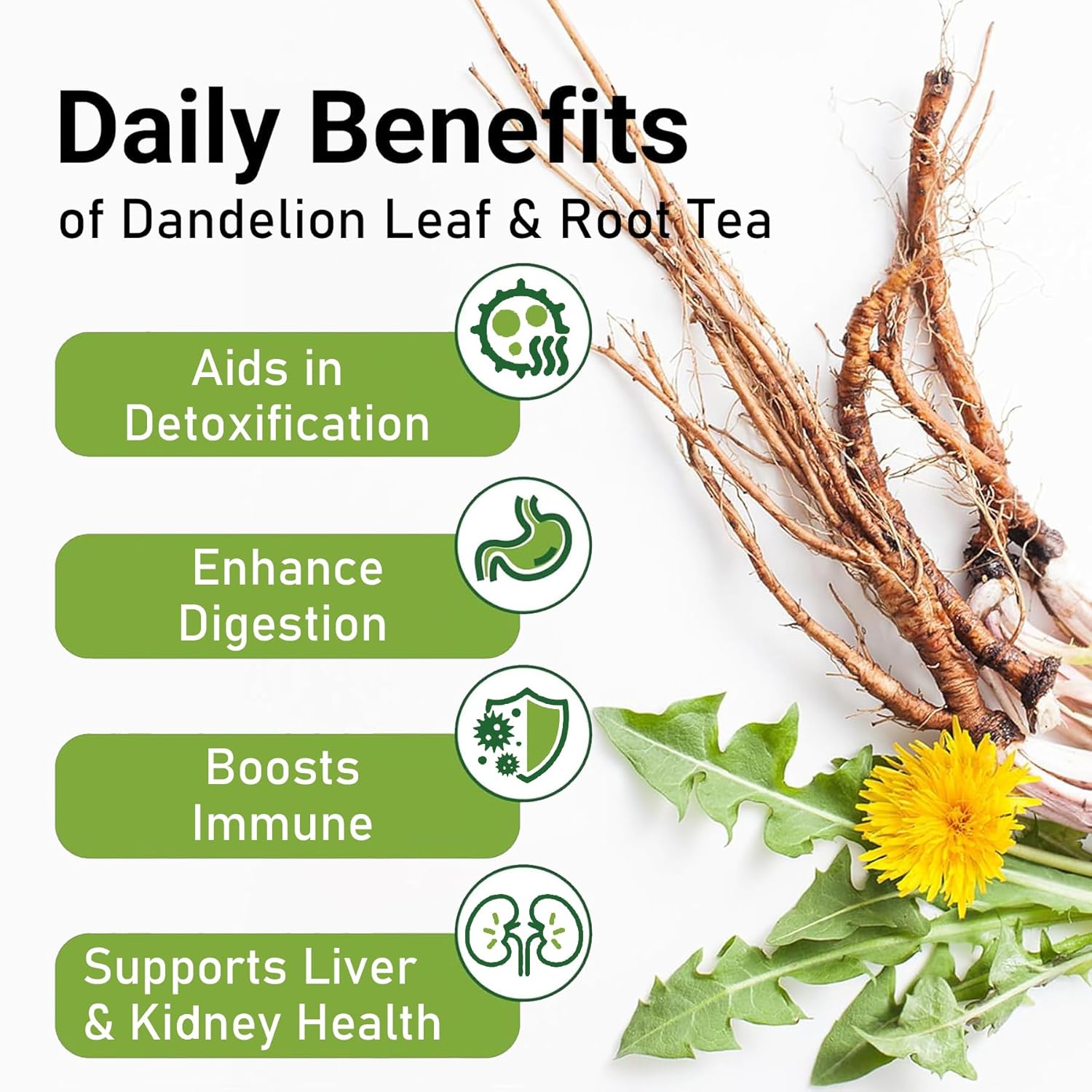 Pure Dandelion Leaf & Root Blend – Made with carefully selected dandelion leaf and root, traditional herbal remedy without any artificial additives or fillers.