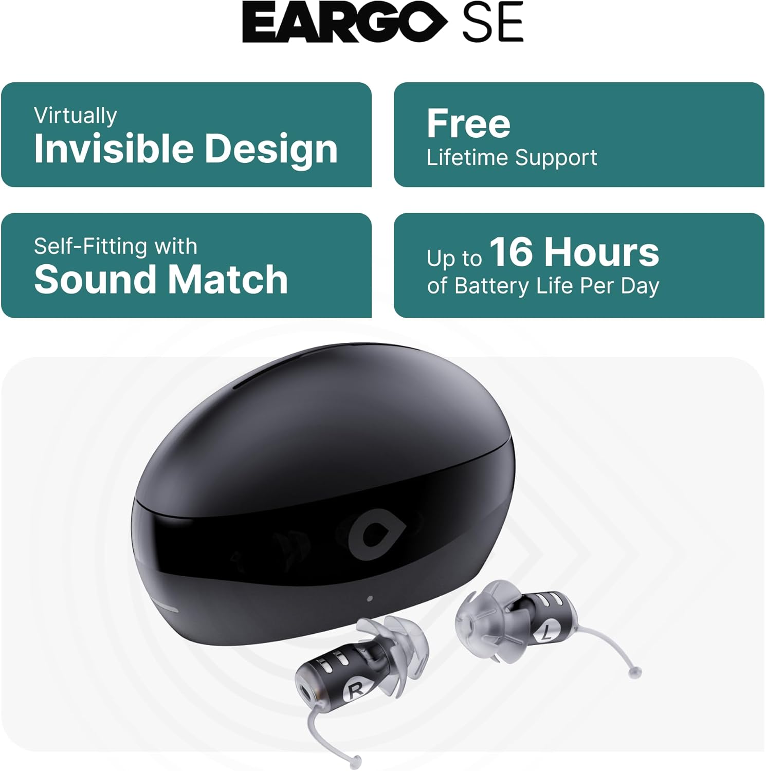 ADVANCED HEARING AID TECH – Self-fitting, FDA-cleared OTC hearing aid for mild to moderate hearing loss, with virtually invisible completely-in-canal design and lifetime customer support. Please note that Eargo SE hearing aids are not Bluetooth earbuds, and do not stream music or take phone calls.