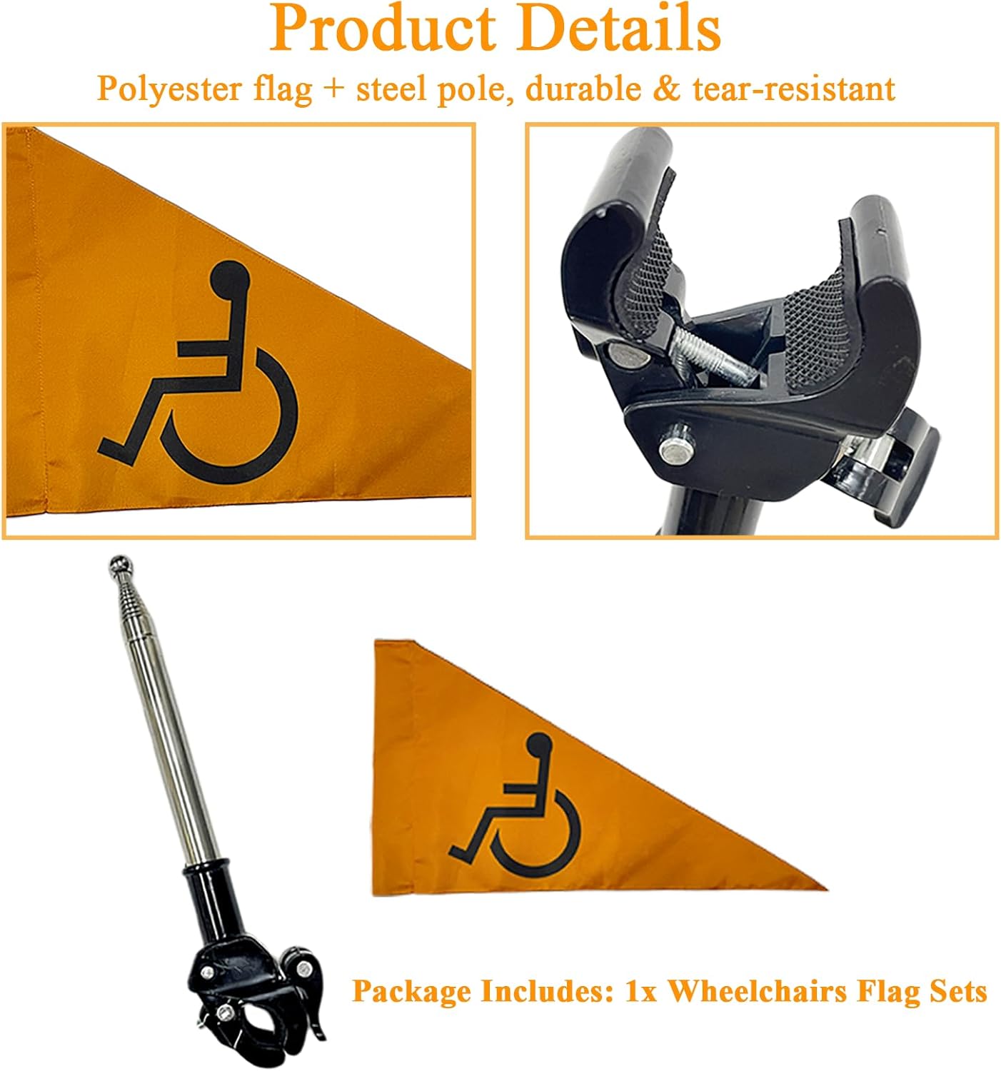 Orange bright and attention-grabbing color that significantly increases your visibility to others, especially in crowded or busy areas. This flag acts as a visual cue for pedestrians, drivers, and caregivers, enhancing your safe.