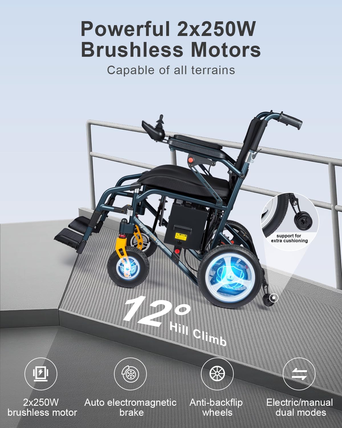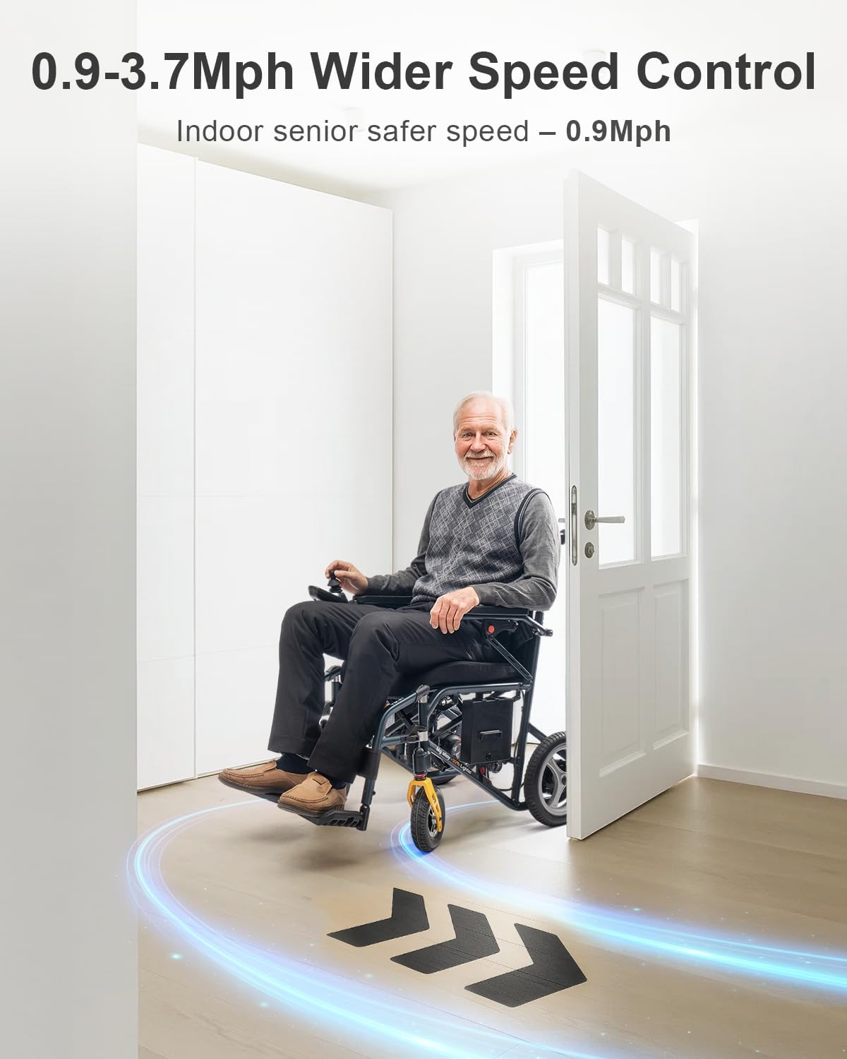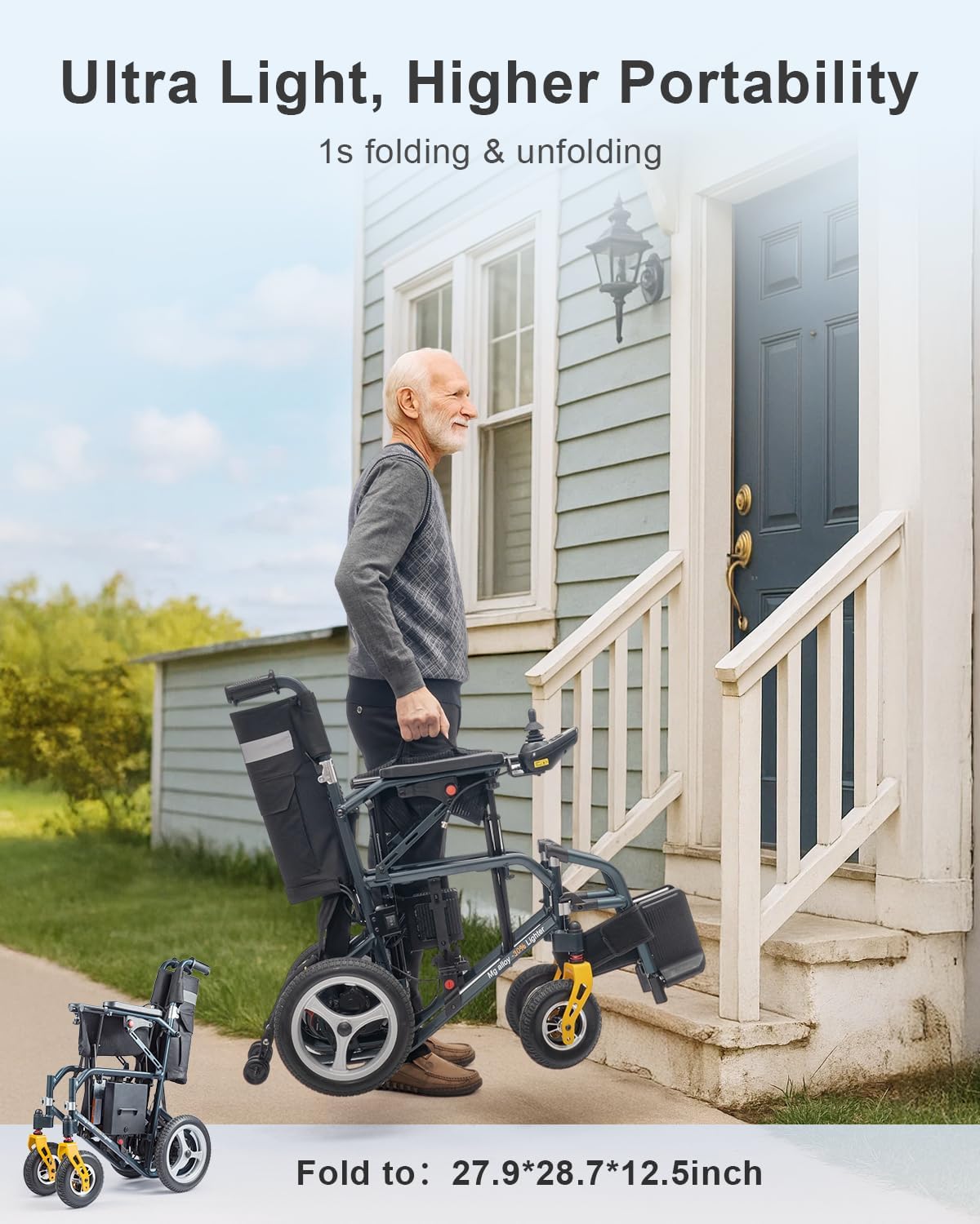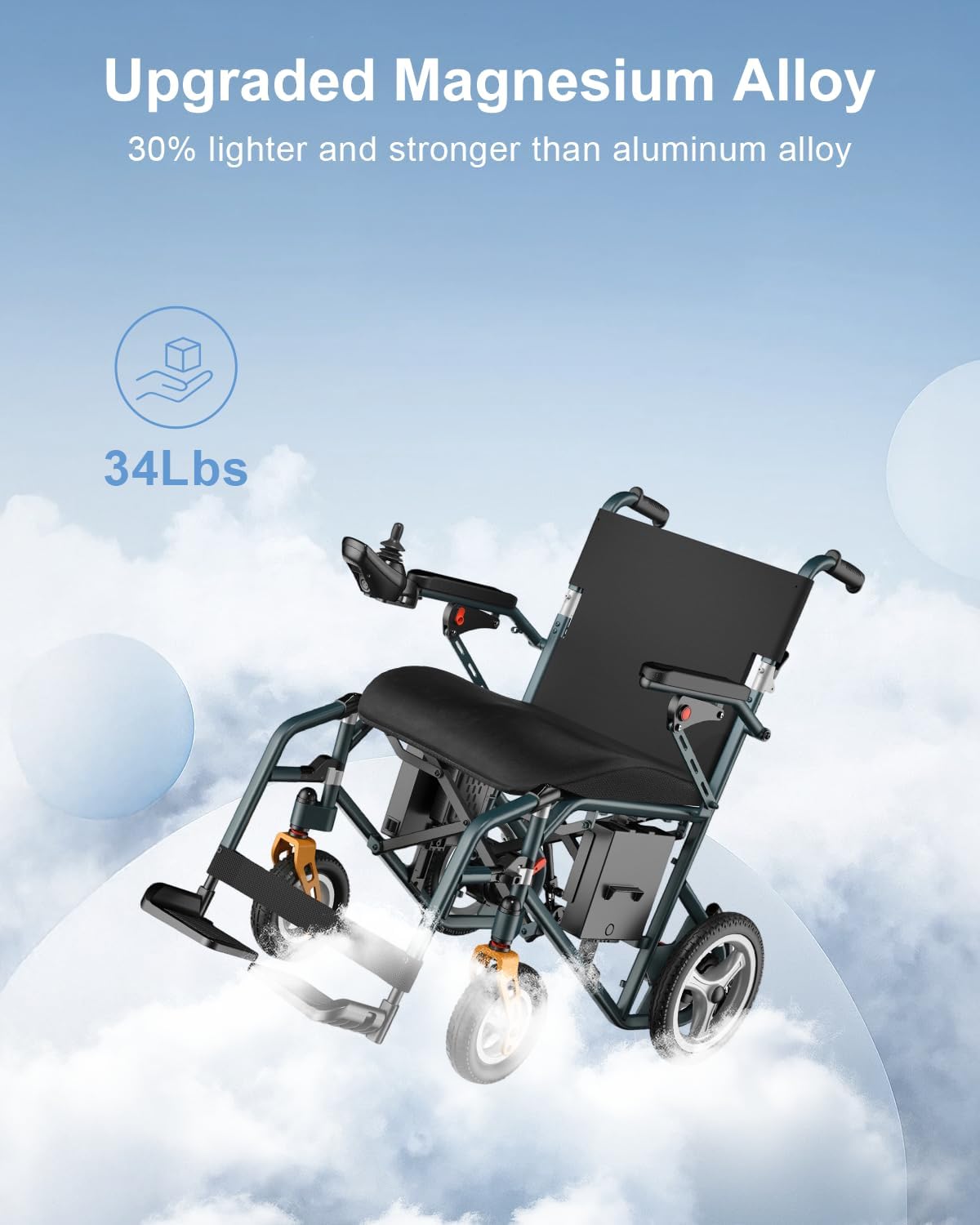 【Ultra-Light Electric Wheelchair & Ready to Roll】The electric wheelchairs for adults features a revolutionary magnesium alloy frame — 30% lighter than standard aluminum frame yet supports 330 lbs.Only 33lbs, bring effortlessly our lightweight foldable power wheelchair, freeing you for museums, flights, and spontaneous outings.
