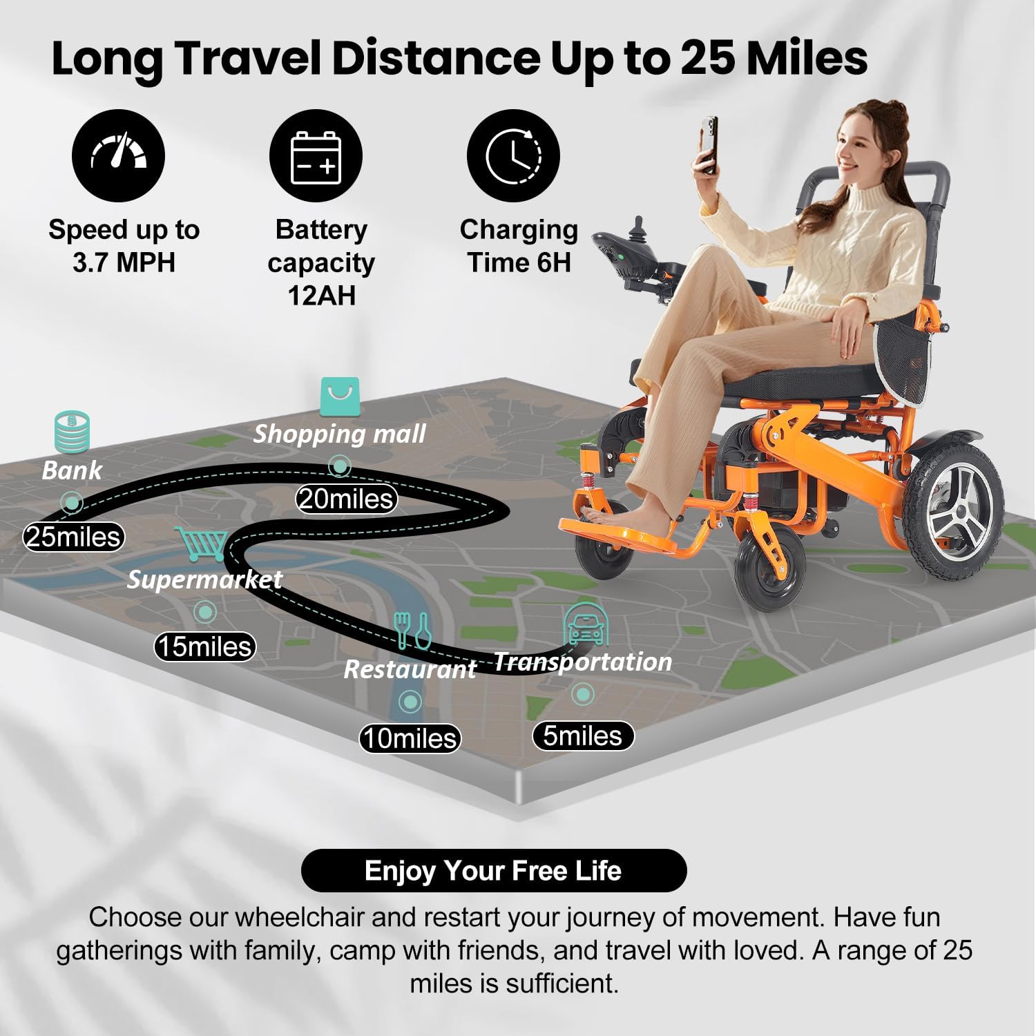 Lightweight & Foldable: The Lightweight folding electric wheelchair weighs only 55 pounds, making it extremely easy to use, especially for seniors. Designed with portability in mind, this wheelchair offers reliable assistance for all aspects of daily life, whether indoors, outdoors, or on the go.
