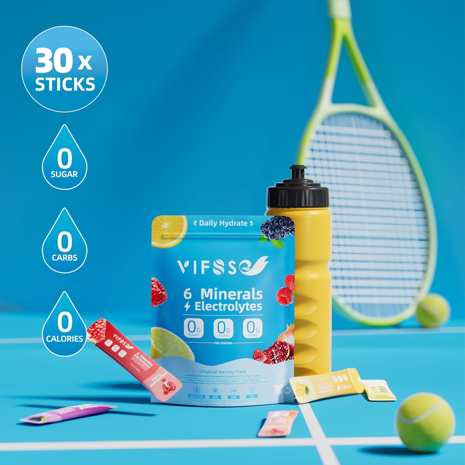 Instant Energy Revival: VIFSSG electrolytes powder packets formulated with a blend of sodium, potassium, magnesium, and calcium, 6 key electrolytes, vitamin C, zinc and delicious fruit-based flavors to swiftly replenish electrolytes lost through sweat, dehydration, or intense workouts.