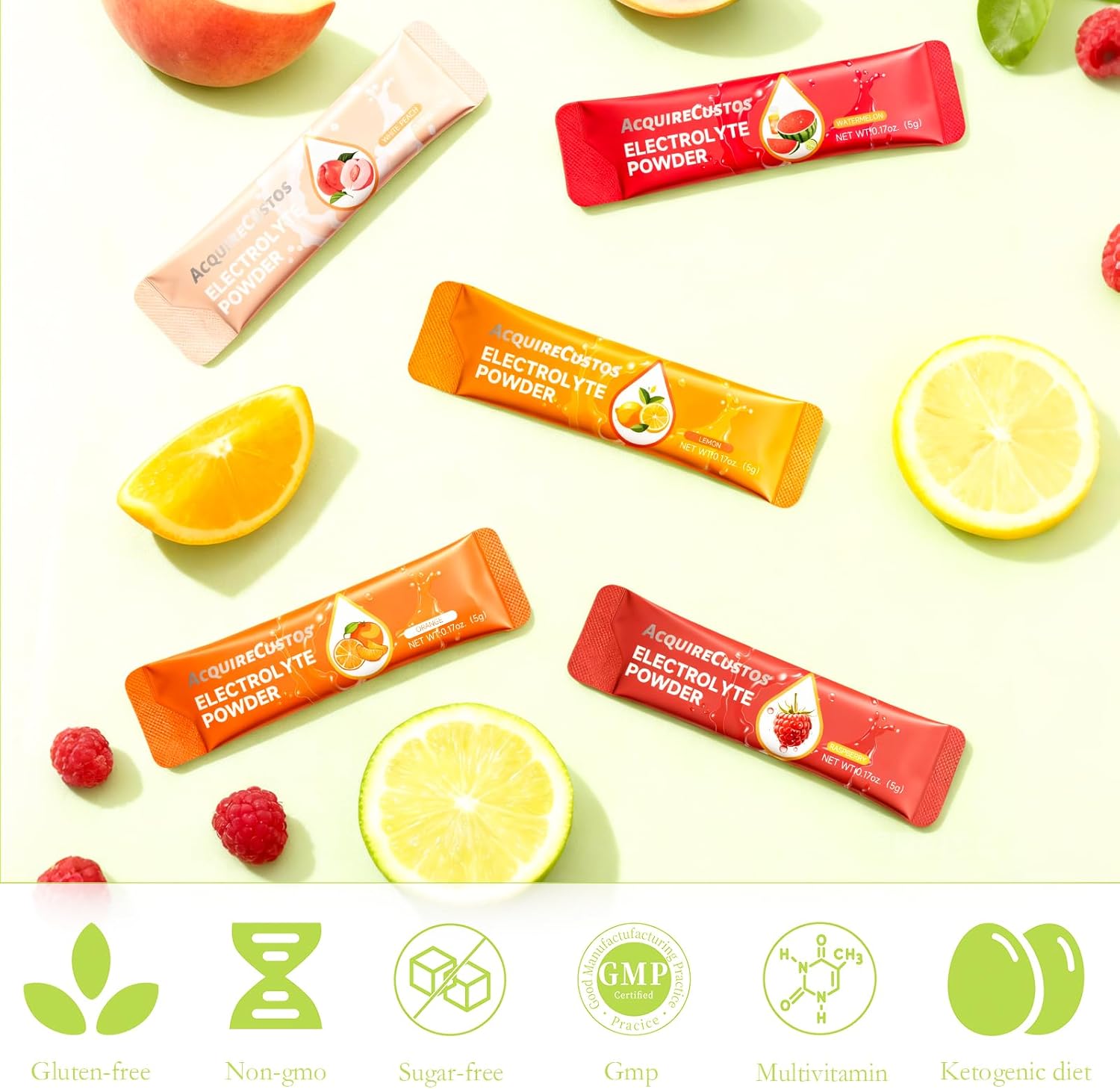 5 FLAVORS, DELICIOUSLY REFRESHING: Each electrolyte drink mix set contains 25 individually packaged electrolyte packets sticks, with 5 sticks of each flavor, including lemon, watermelon, orange, raspberry, and white peach. Sugar-free and gluten-free, with a refreshing taste that’s never cloying. Perfect for low-carb or keto diets, intermittent fasting and vegetarians