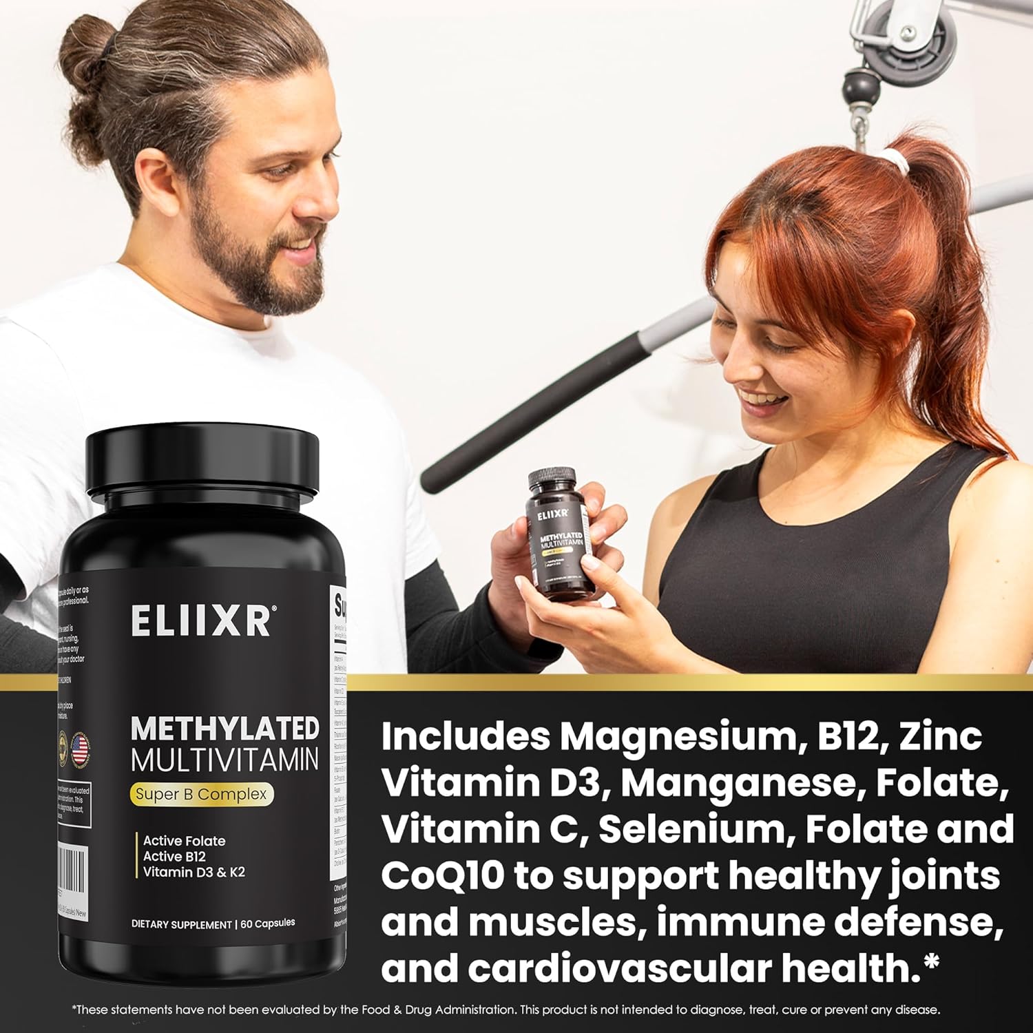 Full Methylated B-Complex: Includes all 8 essential B vitamins, featuring methylcobalamin and Active Folate, vital for cellular energy, metabolism, and brain health. Multivitamin for Men & Women.
