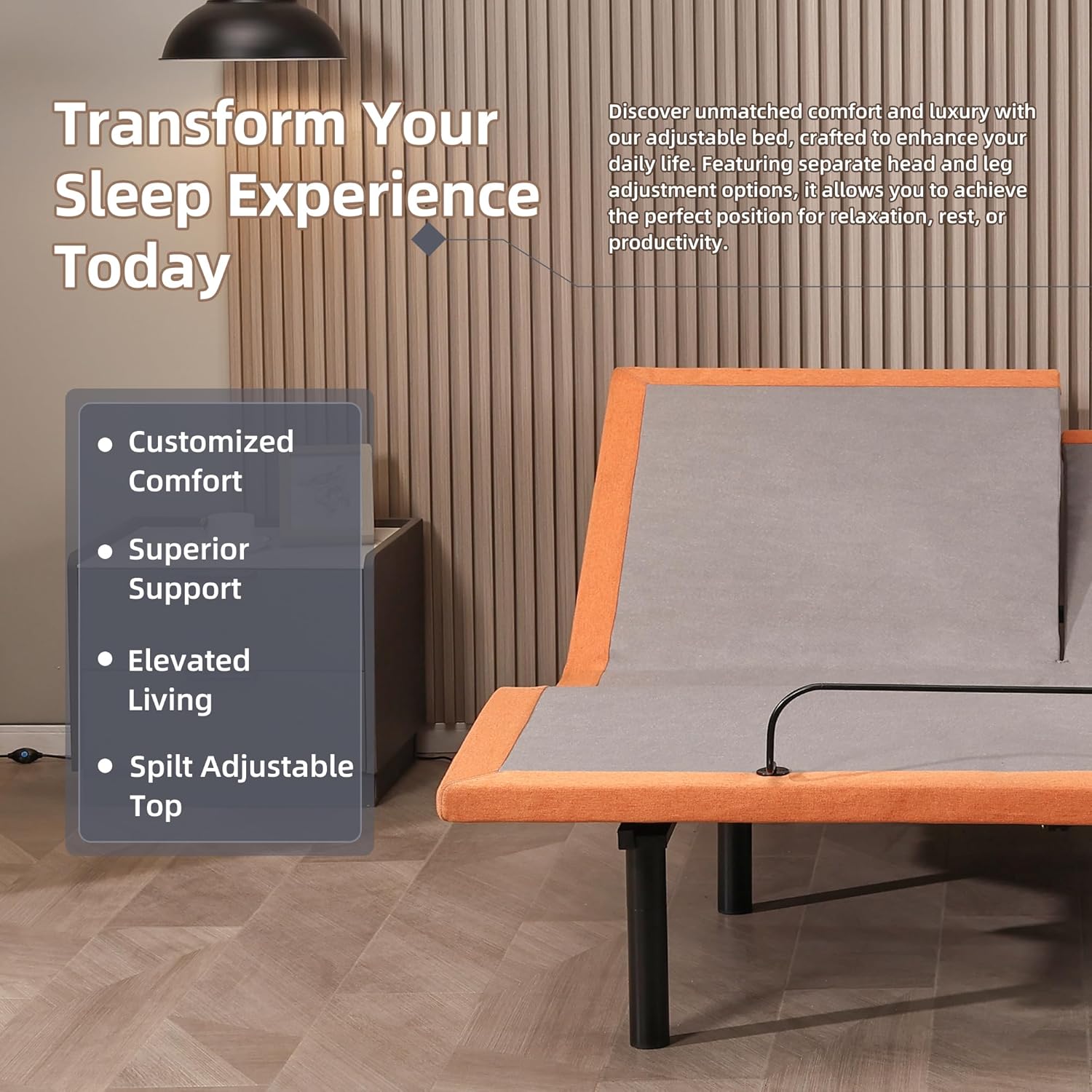 【Split Queen Adjustable Bed Frame】This adjustable base allows each side to move independently—ideal for couples with different sleep preferences. Whether you’re raising the head or foot section, or entering zero gravity mode, you’ll both enjoy personalized comfort without compromise.