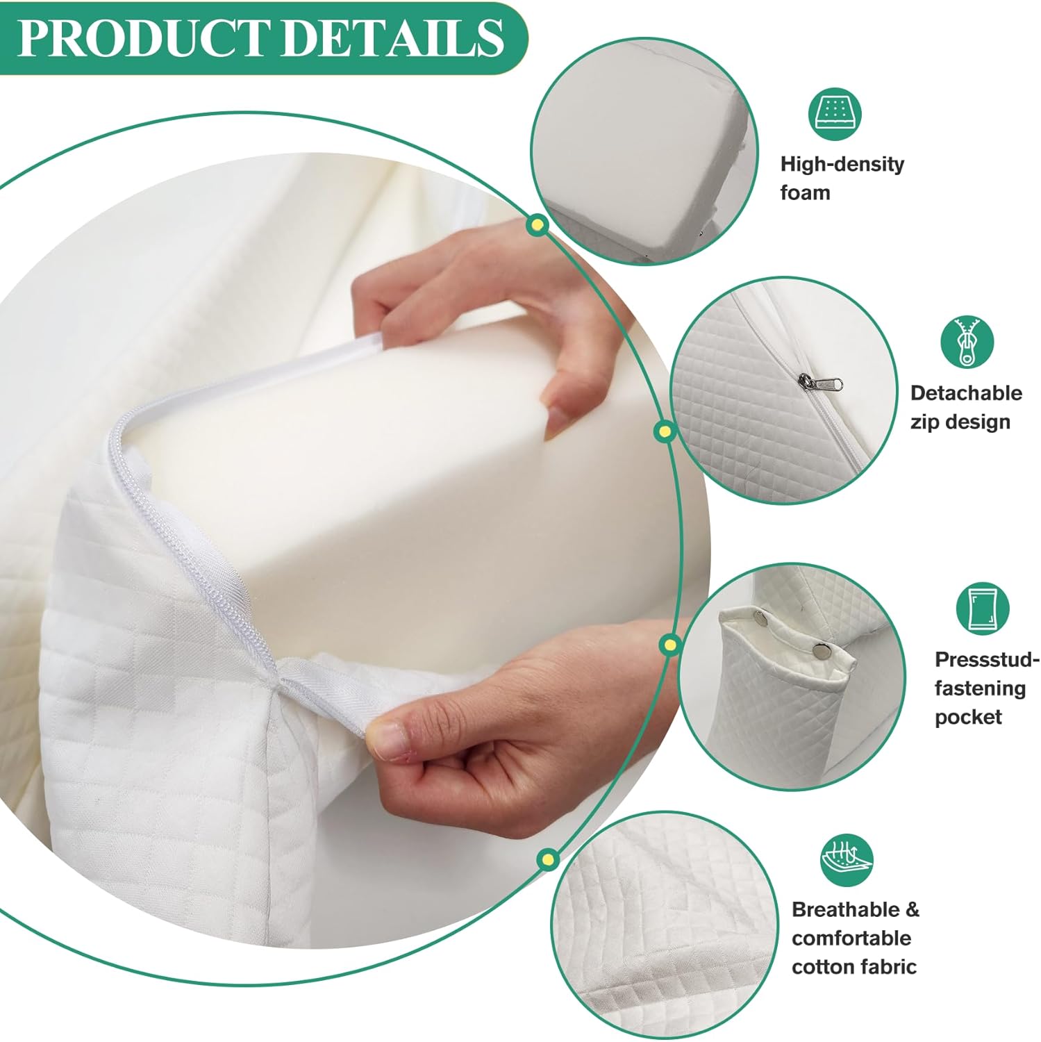 Foldable Design for Multiple Uses : This wedge pillow headboard offers multiple folding configurations ; Adjust the pillow to fill gaps of varying sizes according to your needs or use it as a throw pillow or cushion