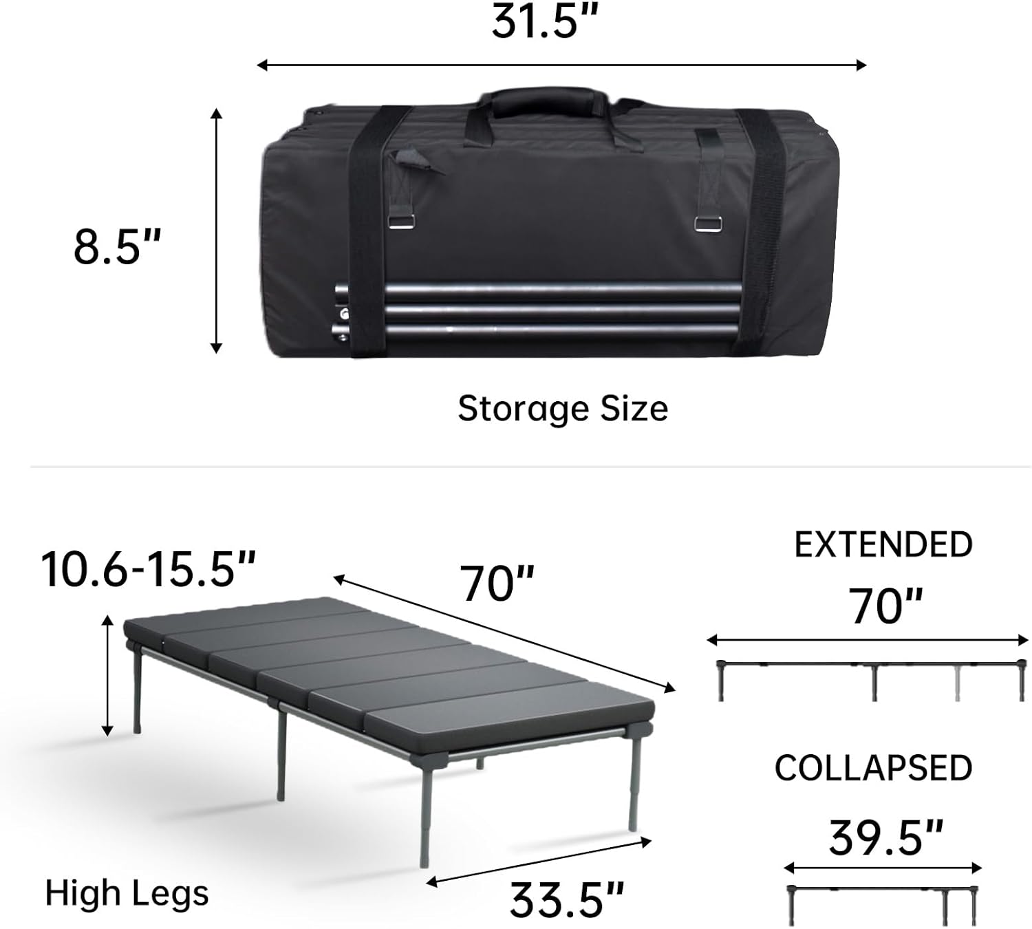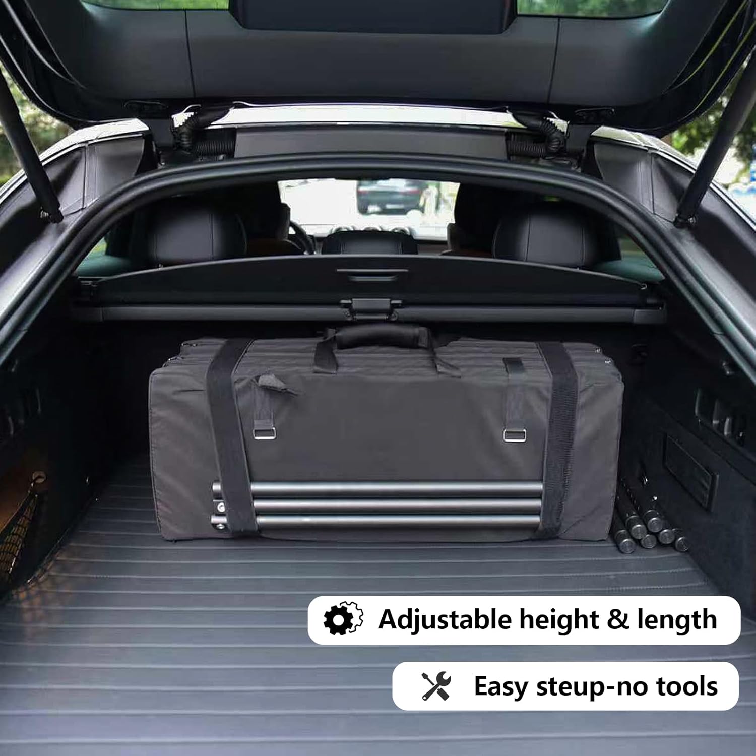 【Space-Saving Design】:The bed frame length is adjustable, perfectly fitting various car models. When folded, it becomes compact, effortlessly fitting into your trunk without taking up extra space.