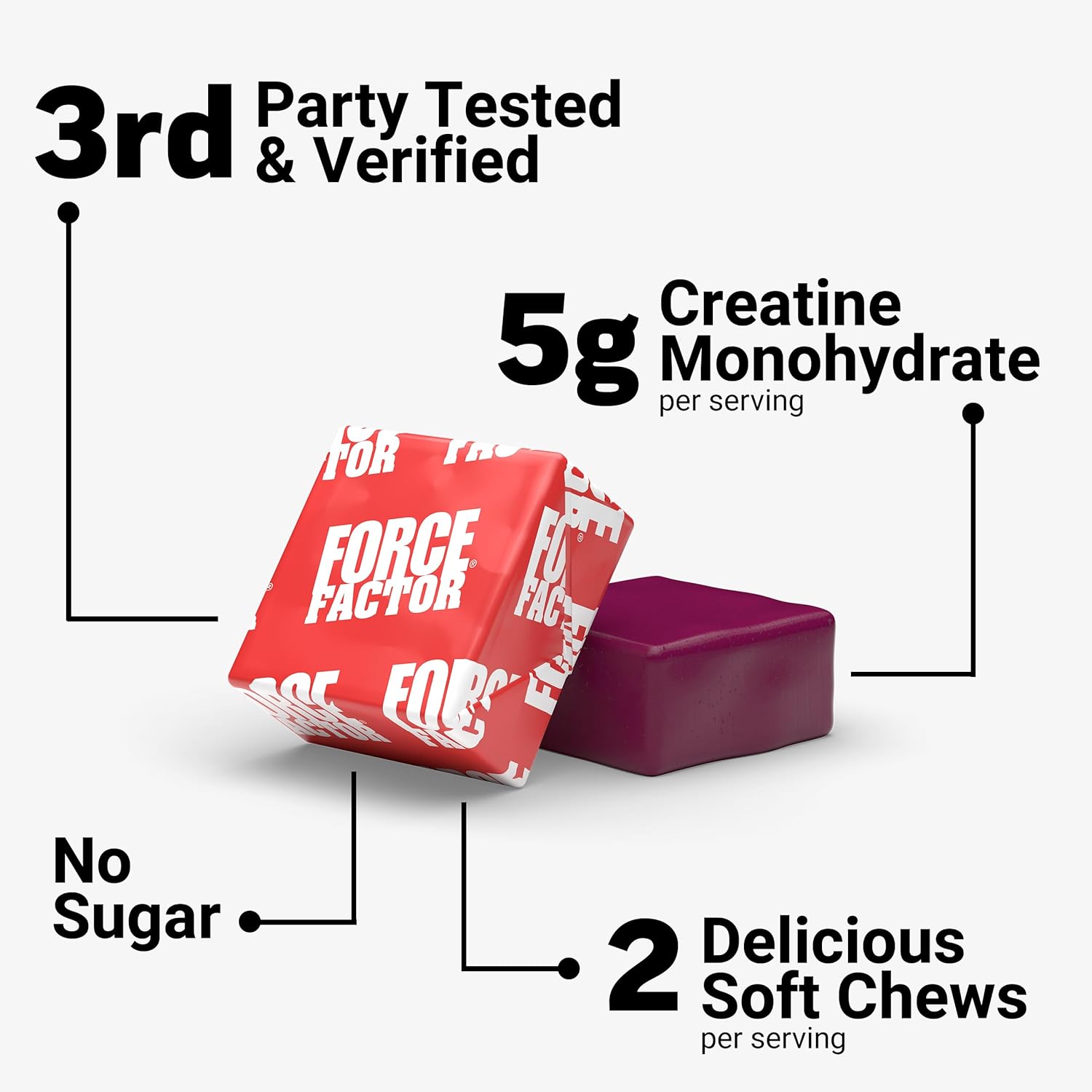 THIRD-PARTY TESTED & VERIFIED 5g: Force Factor Legendary Creatine Soft Chews are third-party tested and scientifically verified to contain 5g creatine monohydrate per serving—unlike some other brands that quietly underdose their creatine chews.