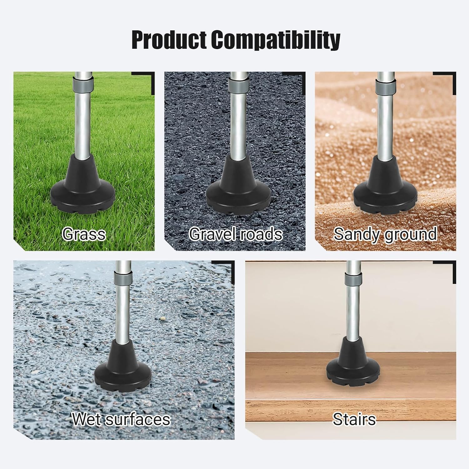 Safely navigate both indoor and outdoor spaces — from home floors to concrete, pavement, grass, and gravel. They also work great as replacement tips for hiking poles, monopods, or tent poles during outdoor camping trips. Easy to install: just remove old tips and slide these on (no tools needed).