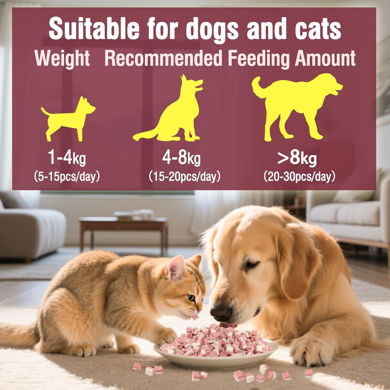 Suitable for all age dogs and cats: A treat that both dogs and cats will love! Freeze-dried chicken cube is free of any indigestion and can be easily digested in the intestines and intestines of even elderly dogs and cats