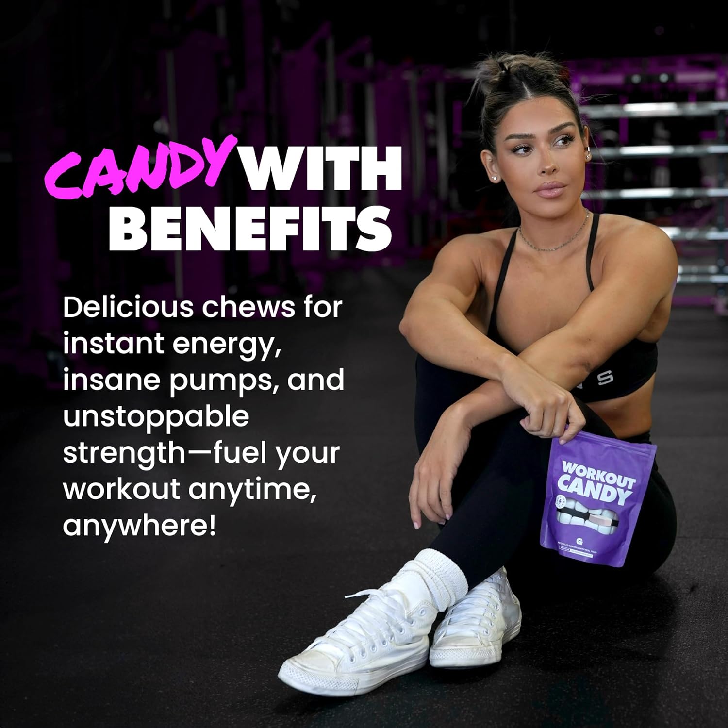 WORKOUT CANDY: Introducing a powerful combination of creatine, whole food derived nitrates, and natural caffeine in a delicious, chewable candy. Our Workout Candy has a delicious sour fruit candy taste and will help give you the power and energy you need to hit new goals in the gym or crush your work day.