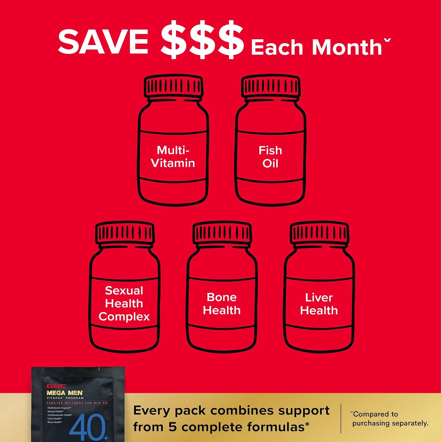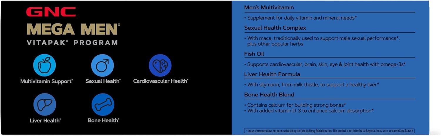 GNC Mega Men 40+ Vitapak Programs combine one of GNC’s best men’s multivitamins with: