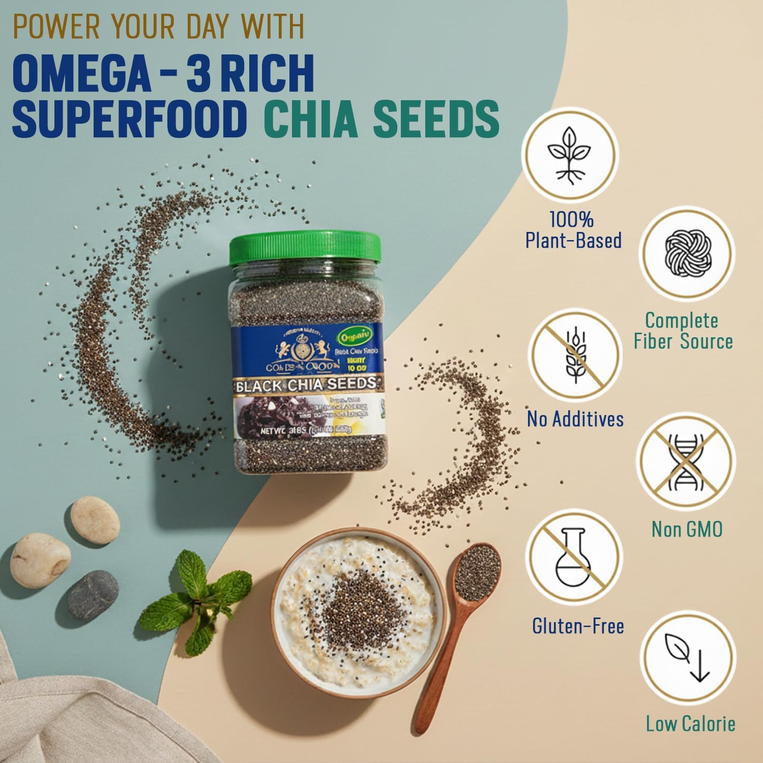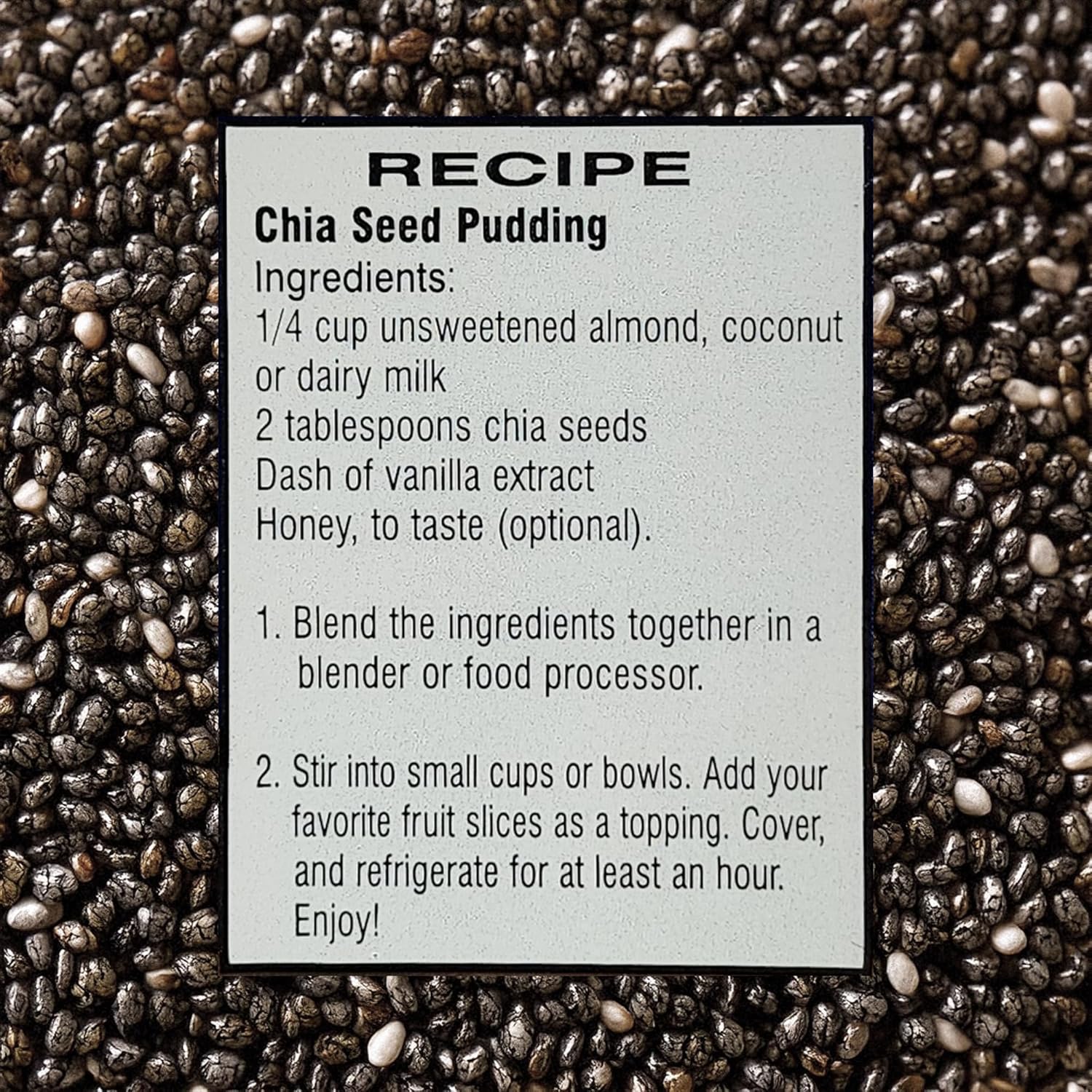 Your Everyday Ingredient: Blend chia seeds for smoothies into drinks, sprinkle on salads, or use ground chia seeds powder for pudding and baking. Their natural gelling power thickens drinks, sauces, and meals while also serving as an egg substitute.