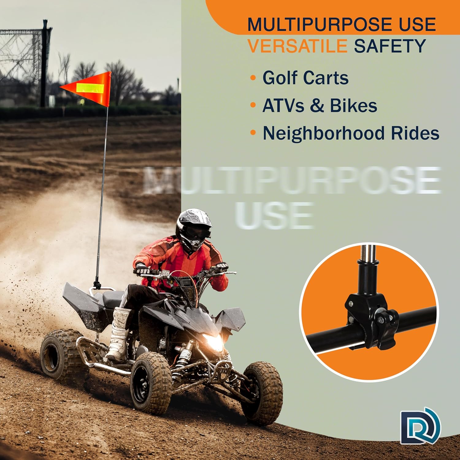 Enhanced Visibility: Bright orange flags with yellow reflective strip stands out in daylight and low light; helps drivers notice your golf cart or small vehicle from a distance