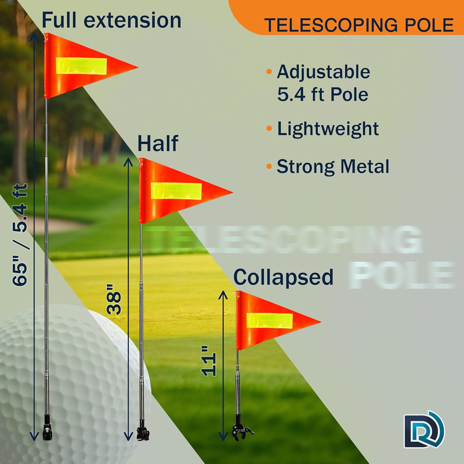 Quality Materials: Windproof waterproof and tear resistant fabric golf cart flag keeps colors bright over time; durable PVC telescoping flagpoles resist bending or breaking in daily outdoor use