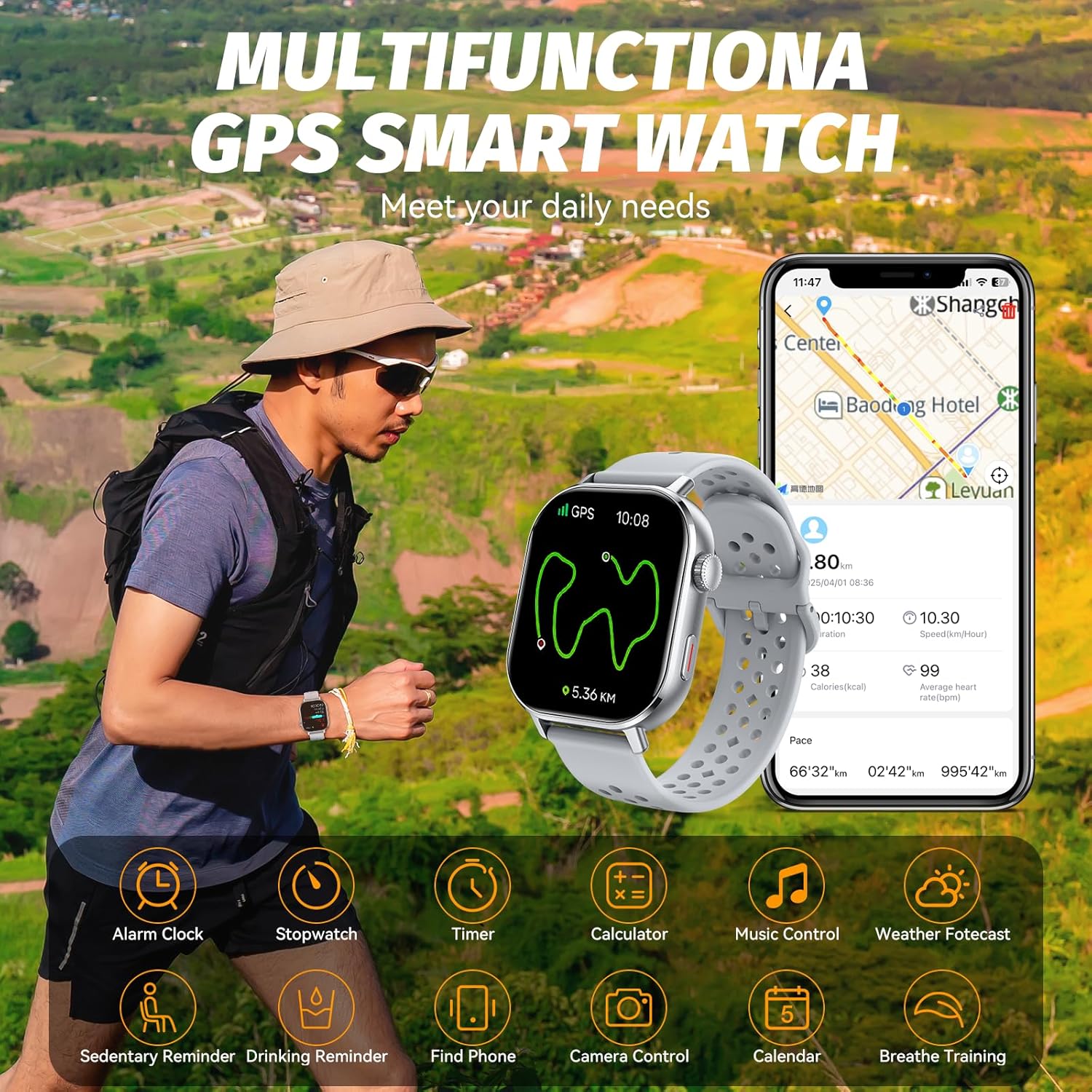 GPS and Multi System Positioning: Our professional GPS system smart watch taps into multiple global satellite networks to deliver reliable tracking—whether mapping your downtown running route, recording scenic hiking trails, or simply ensuring you never miss a turn while exploring a new city on business. The integrated altimeter logs every office floor you climb and every mountain foot you conquer, while the barometer provides real-time pressure trends for both weather-sensitive adventures and daily commute planning. From your morning park jog to weekend wilderness exploration, it ensures you’re always precisely located, informed, and on track.