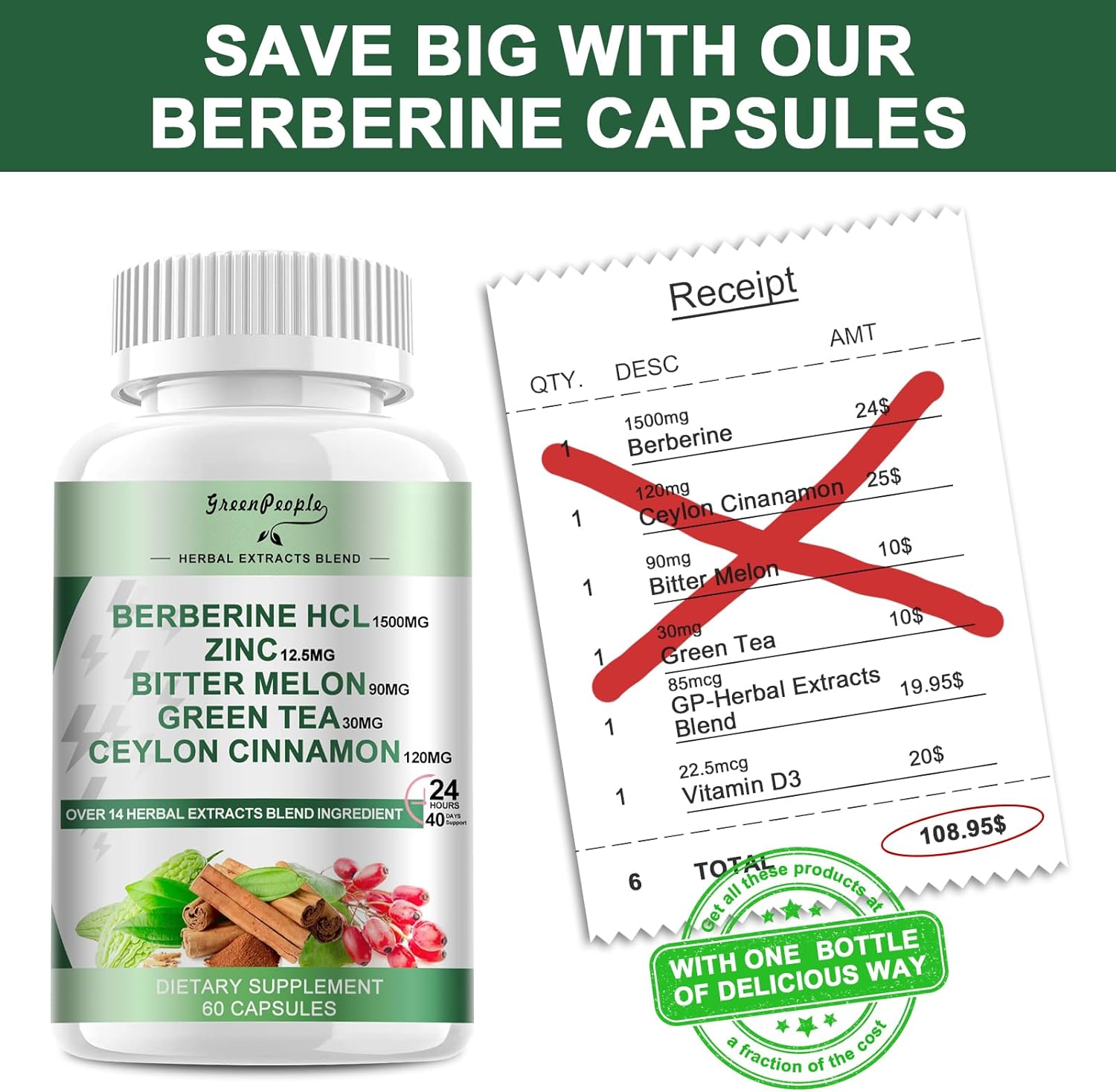 High Quality Formula: Formulated with Bitter Gourd & Green Tea for immune support,GREENPEOPLE Berberine blend of potent Turmeric,Artichoke,Green Tea,and Moringa Leaf in a daily supplement,Immune support.