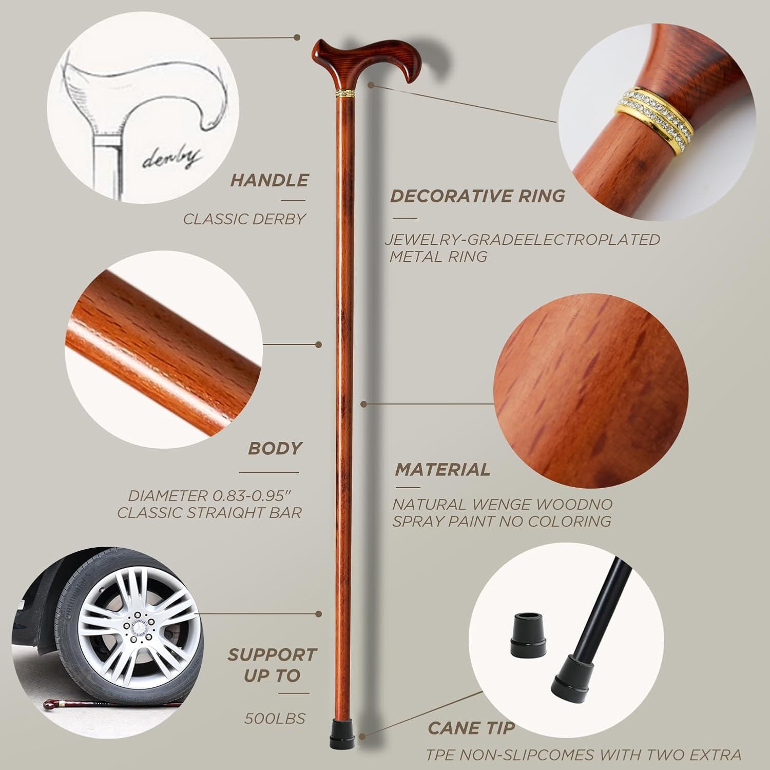 【Walking Cane】Our walking canes are made of lightweight and solid wood, which maintains a stable weight-bearing capacity without making your hands feel heavy and tired for continuous use. It weighs 0.9 pound and can hold up to 250 pounds, which is the best choice for everyday use.