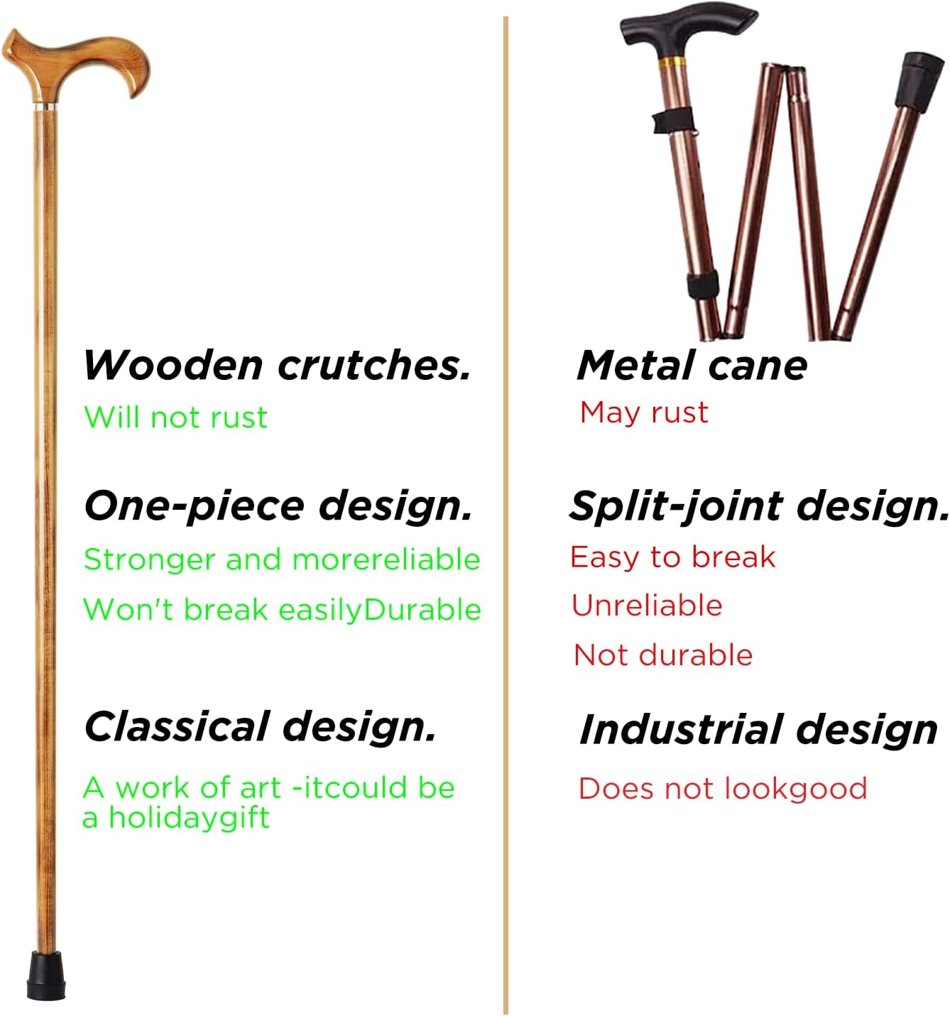 【 Good Choice】 wooden walking cane is not as prone to rust and breakage as thin metal tube canes. wooden walking canes are stronger, more durable and more natural than metal canes.