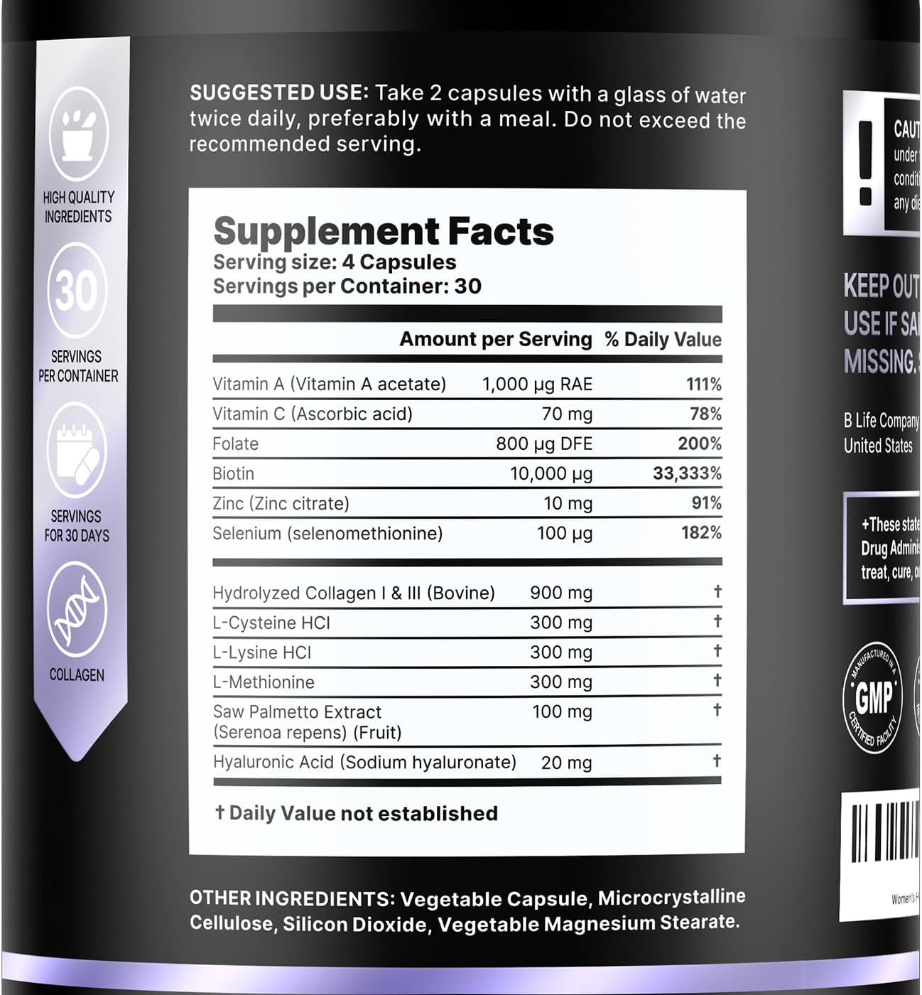 Clean Formula, Real Results: Formulated without GMOs, gluten, or artificial additives—just pure, effective vitamins and supplements to help women feel and look their best. Ideal for those seeking natural hair growth products.