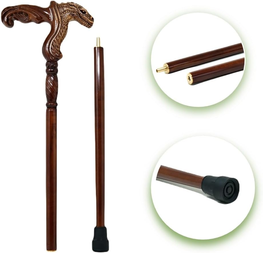 EXCEPTIONAL CONSTRUCTION: This walking stick is carefully handcrafted and carved from natural wood; every piece is individually cut, dried, sanded and then finished with a clear coating to make it weatherproof.
