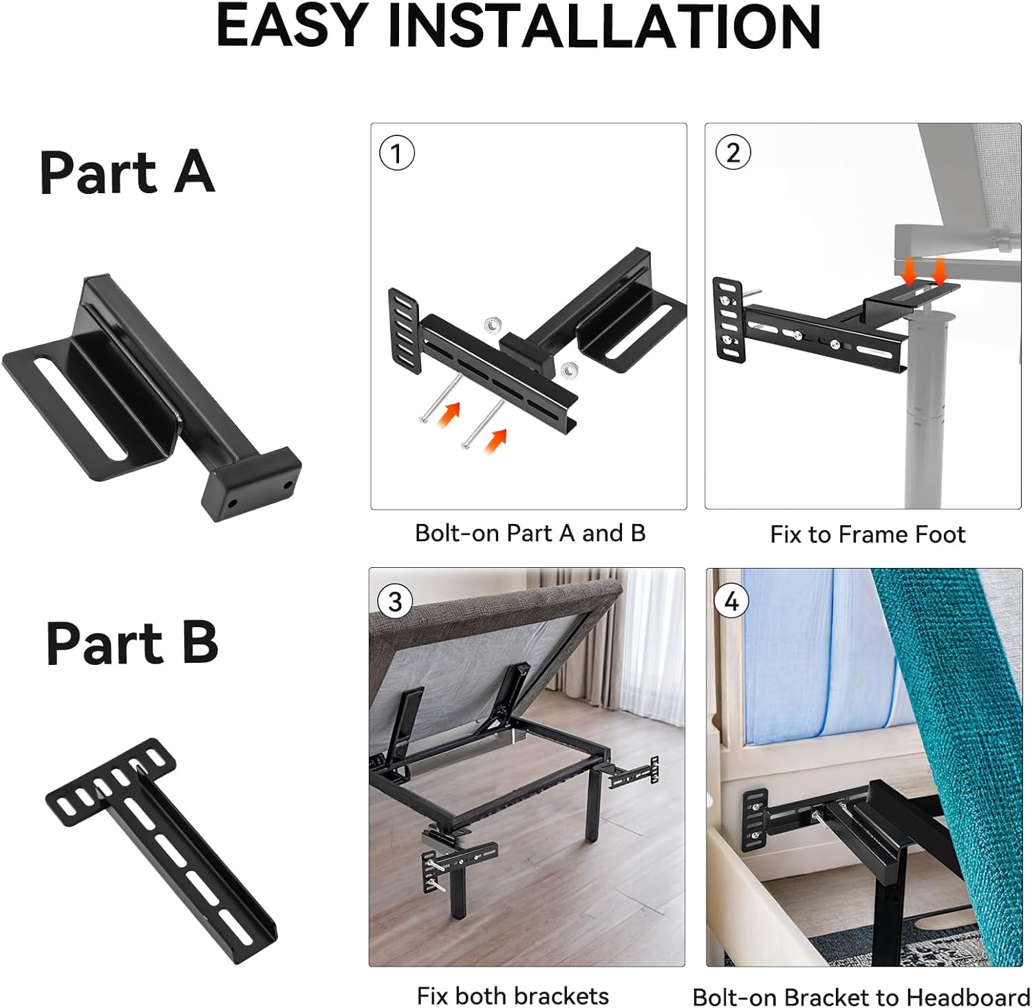 Robust Construction and Enhanced Functionality: Crafted from solid steel,The headboard bracket provides stability and safety features. The bracket helps prevent the headboard from rocking or moving when adjusting the mattress. The stable connection ensures that the user can adjust the bed comfortably.