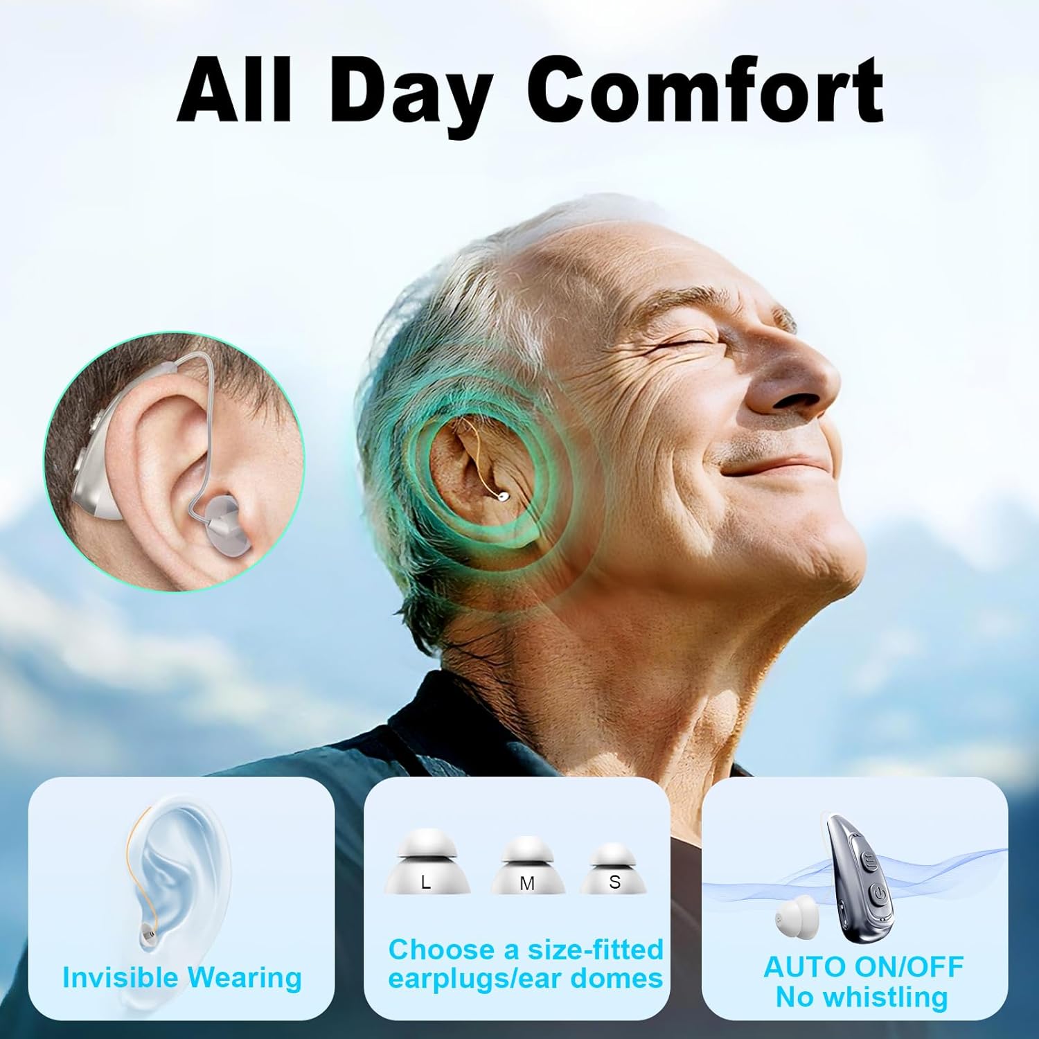 Upgraded top 32 Channels chip & technology:With Advanced chip and technology,our hearing aids equipped with proprietary noise cancellation reducing muffled, distorted, and sharp tones by 90%,delivers real-time voice amplification about 42 dB,allow you to have a comfortable and smooth listening experience with our 32 Channels hearing aids for Seniors