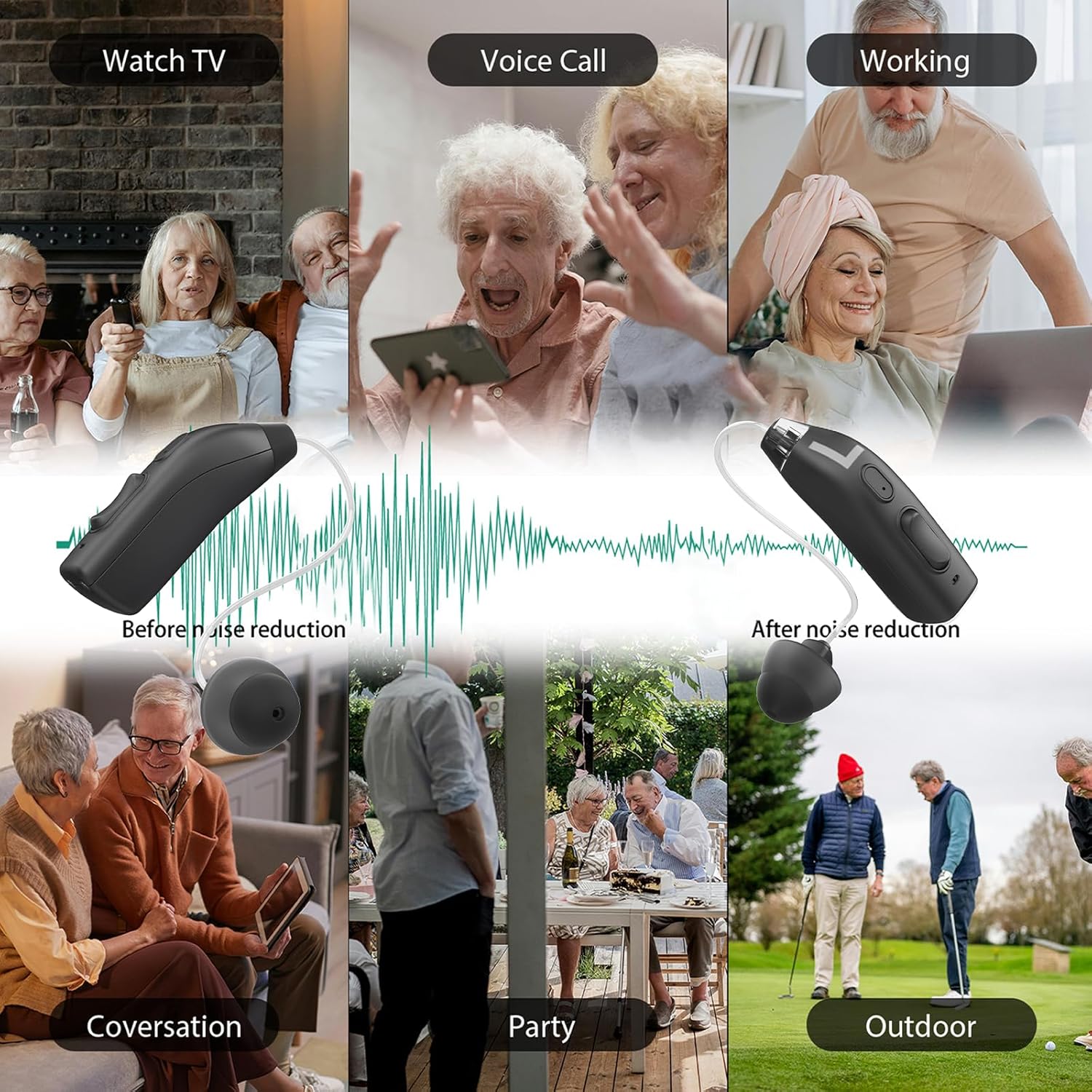 Easy to use: This device is designed with user-friendly. It features intuitive buttons for easy volume adjustment and mode switching. With no complicated procedures or technical knowledge required, even seniors with limited dexterity can quickly master its operation and enjoy personalized hearing experiences hassle-free.