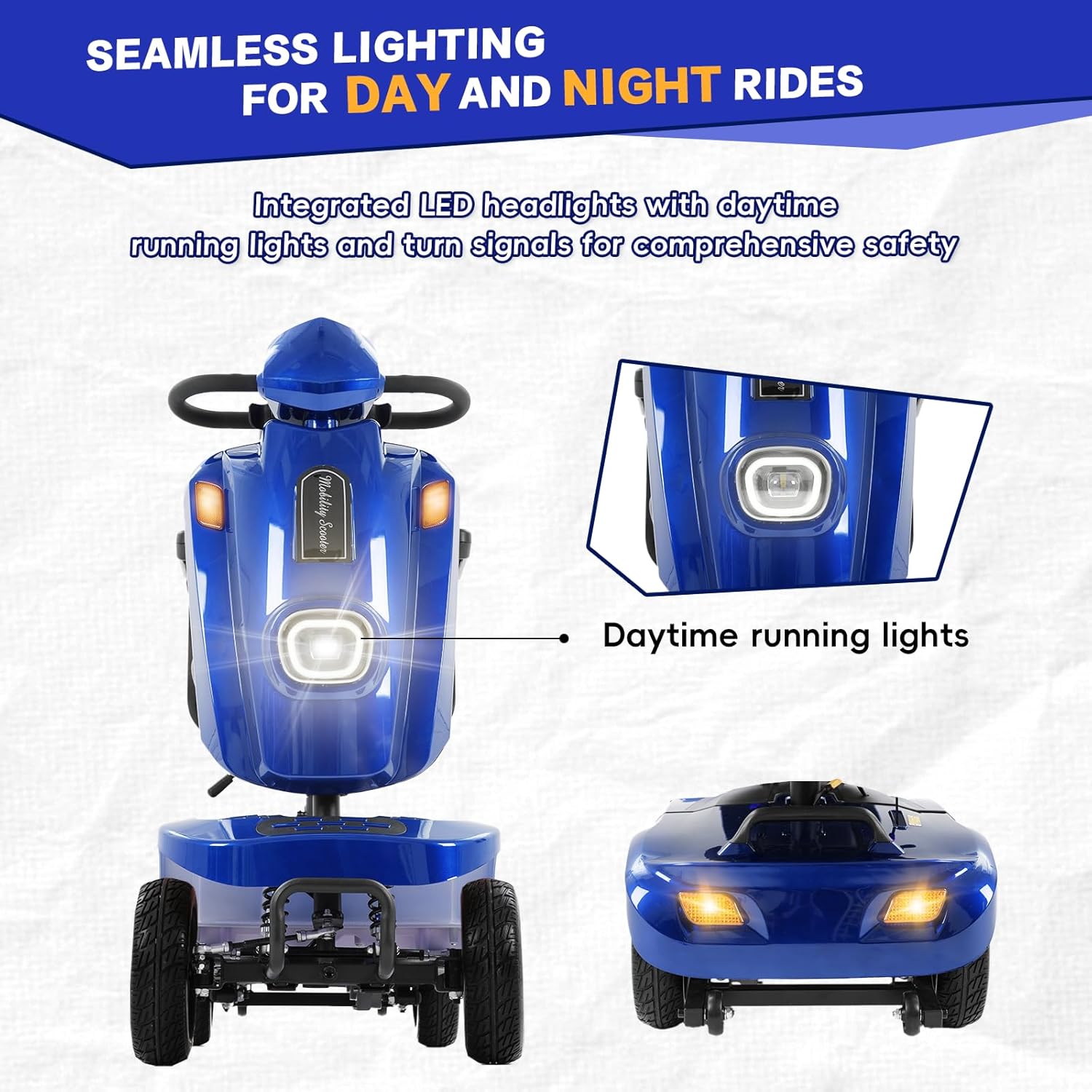 Enhanced Safety Lighting System — Built for safe use anytime, this mobility scooter includes daytime running lights, night mode, and front/rear turn signals. Whether indoors or outdoors, day or night, the MS09 PLUS ensures maximum visibility—perfect for powered mobility scooter users who prioritize safety