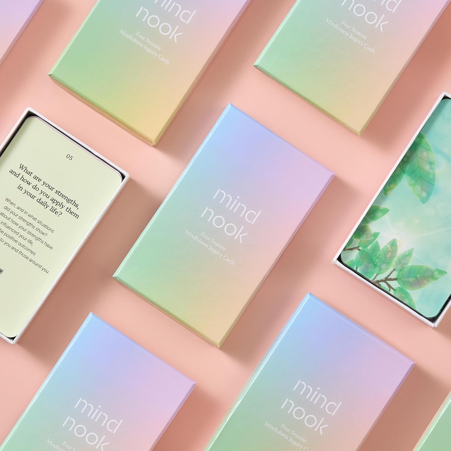 Step into a world of tranquility and profound self-awareness with the Mind Nook Four Seasons Mindfulness Inquiry Cards.