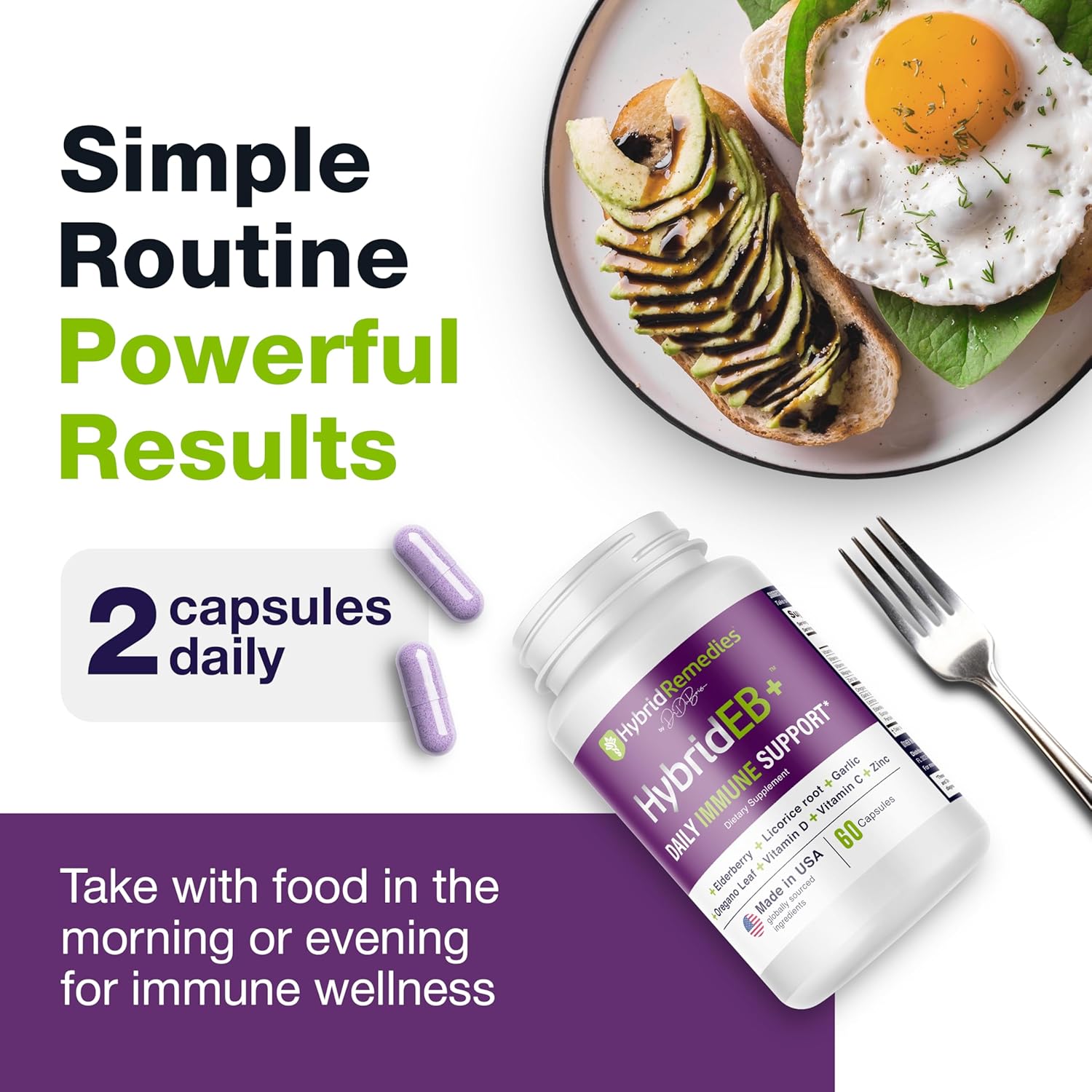 Radiant Skin with Vitamin C & Zinc: Boost skin health with immune-supportive Zinc and Vitamin C, protecting collagen and elastin for firmer, youthful-looking skin enhanced by Elderberry’s antioxidants. Our HybridEB capsules are a great alternative on elderberry gummies.