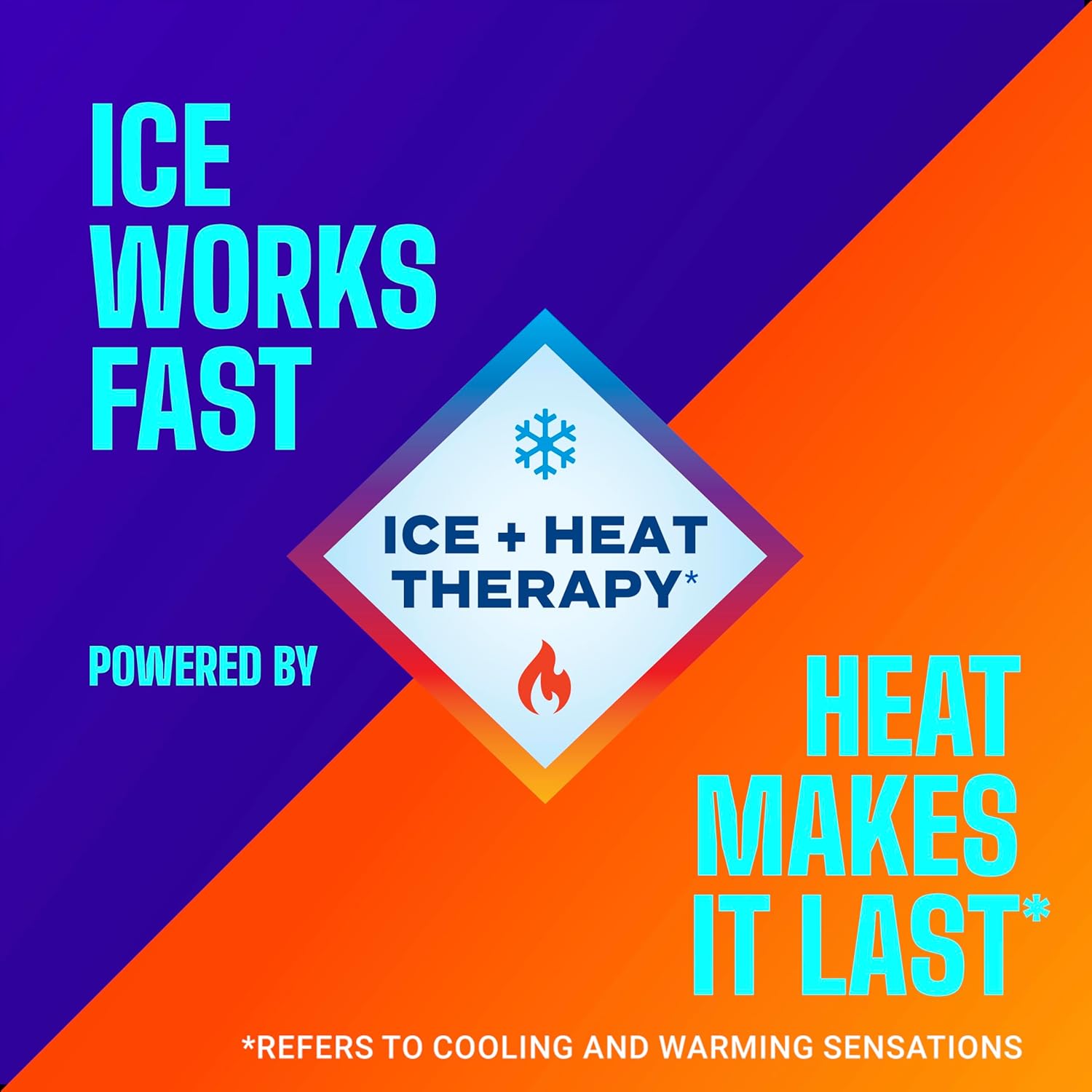 CONTRAST THERAPY*: A cooling, icy sensation dulls the pain followed by a warming, hot sensation that relaxes it away *Refers to the cooling and warming sensations