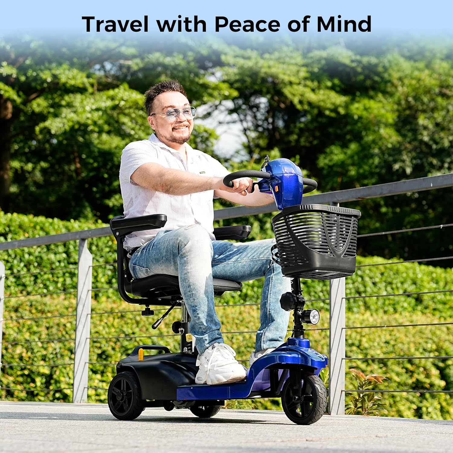 Easy to Transport: This mobility scooter is designed for convenience, with a body that is easy to disassemble and reassemble, allowing you to store and transport it effortlessly wherever you go. Folded dimensions (without basket and seat) are 40.6 x 19.7 x 21.7 inches, unfolded dimensions (with basket and seat) are 43.3 x 19.7 x 39.4 inches, and the product weighs 85.5 pounds, fitting into most SUV trunks.