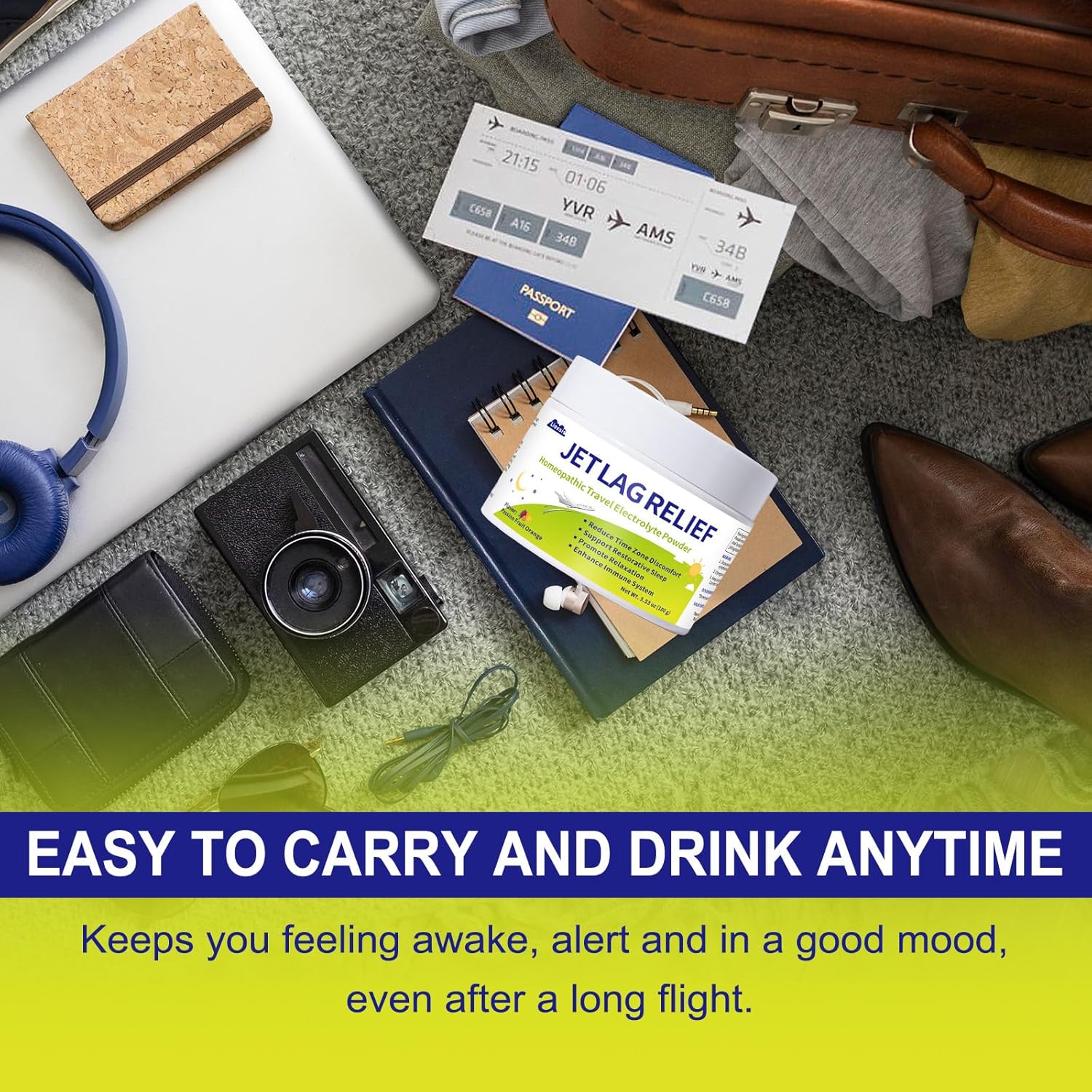 Jet No Lag Homeopathic: Enriched with chamomile, magnesium, our formula helps digestion, hydration, and enhances immunity, allowing you to adjust to new time zones faster and feel great on the road