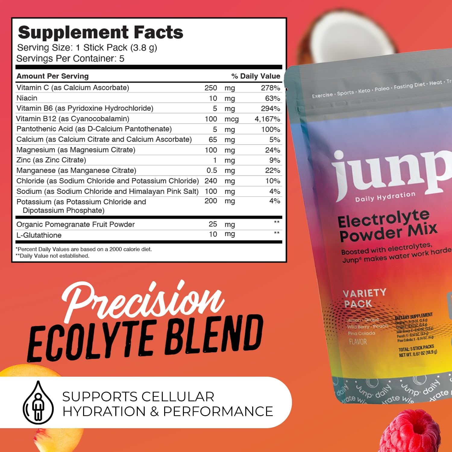 JUNP Hydration performance drink powder zero calorie calories electrolyte powder mix dietary  JUNP Hydration performance drink powder zero calorie calories electrolyte powder mix dietary
