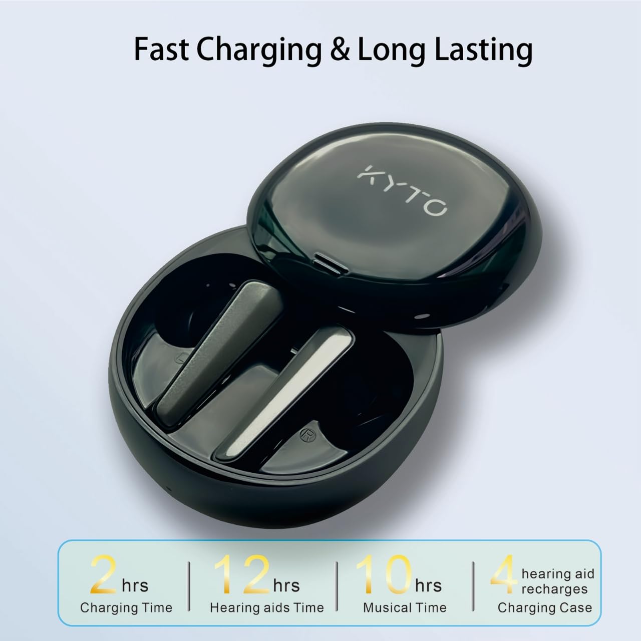 【Quick Charge】 It takes only 2 hours to fully charge both the charging case and the hearing aids, and the charging case can charge the headphones four times. Fast charging, durable, one charge can help you hear for 12 hours, always help your life