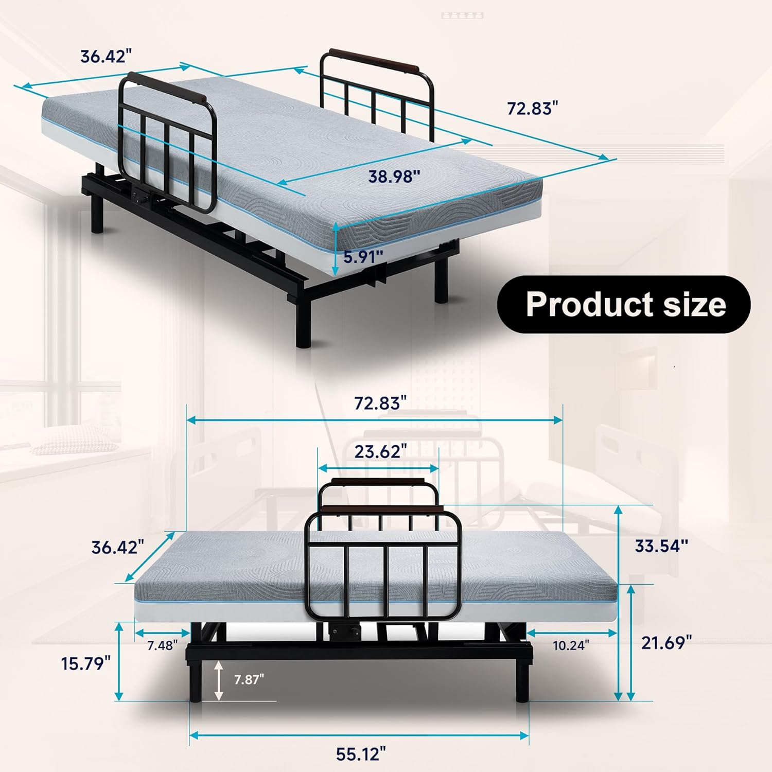 ✅ EASY INDEPENDENCE WITH SIMPLE REMOTE CONTROL: Regain the freedom to sit up and lie down with ease. The one-touch remote control smoothly adjusts the backrest to help you get in and out of bed safely without assistance. It also lowers the legs to find the most comfortable position for reading, watching TV, or relieving pressure.