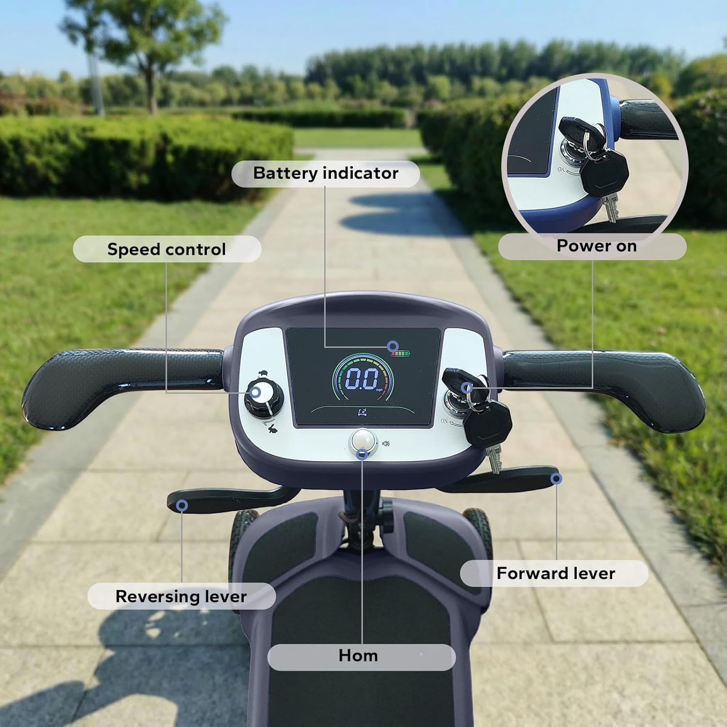 2.FOLDABLE & TRAVEL-FRIENDLY Easily foldable design of our lightweight foldable mobility scooter allows for convenient storage and transportation. This portable mobility scooter is perfect for airplane travel, car trunks, and tight spaces. Take your lightweight mobility scooter anywhere with confidence.