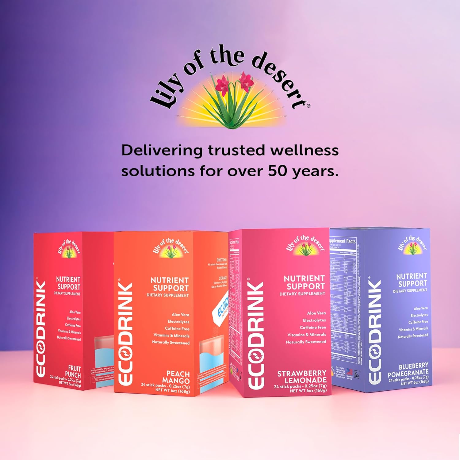 TRUST LILY OF THE DESERT: Stay refreshed and nourished with EcoDrink and try our hydrating and energizing EcoSport packets, also infused with aloe vera organically grown by Lily of the Desert, a trusted leader in natural wellness for over 50 years.